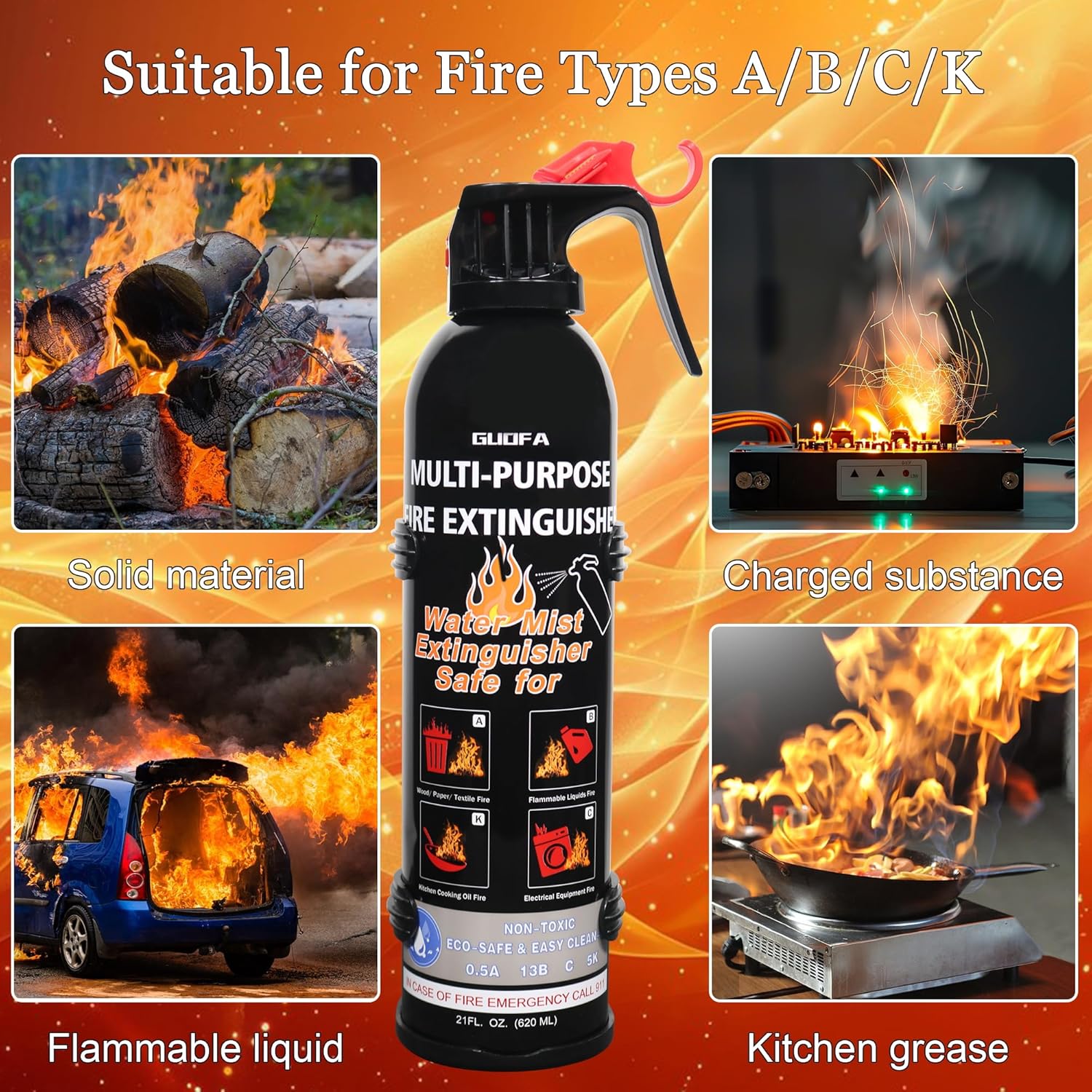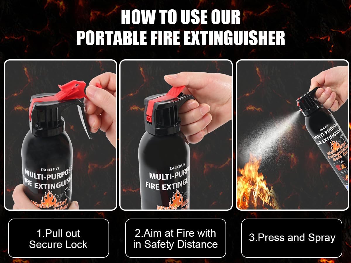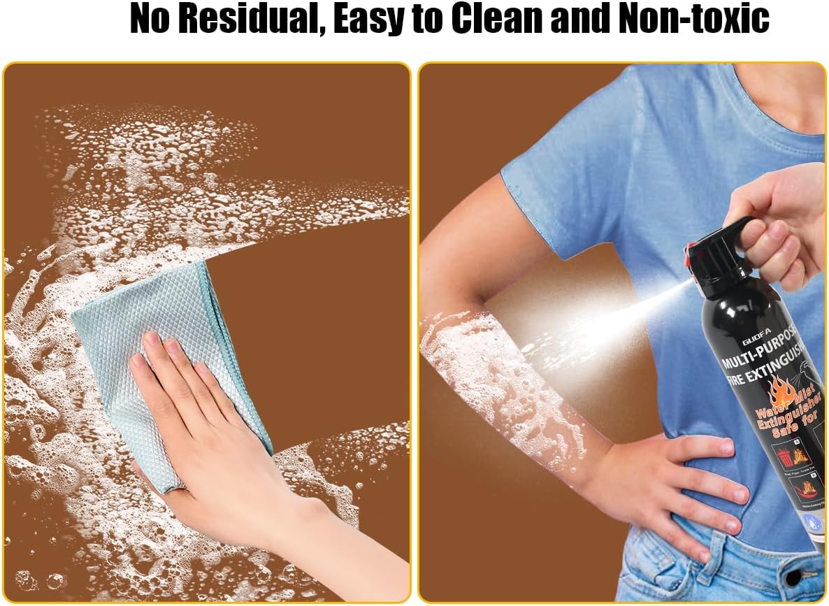 Easy to Use and Clean: This car fire extinguisher is designed to be easy to use even for beginners without any training. Just pull the pin at the top, aim the nozzle at the fire, and press the handle to spray water. The water-based fire extinguisher does not leave any residue after the fire is extinguished, making it easy to clean when used for kitchen