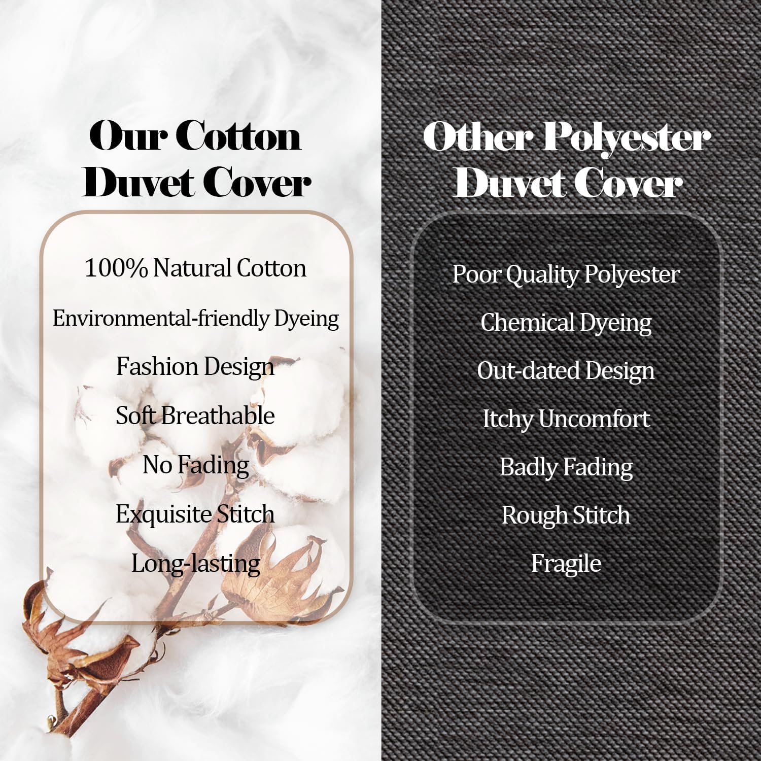 100% Cotton: We select quality natural cotton fabric to make our duvet cover, which is soft, comfortable, lightweight and breathable, bringing you a good sleeping experience, leaving you feeling ultimate softness and comfort.