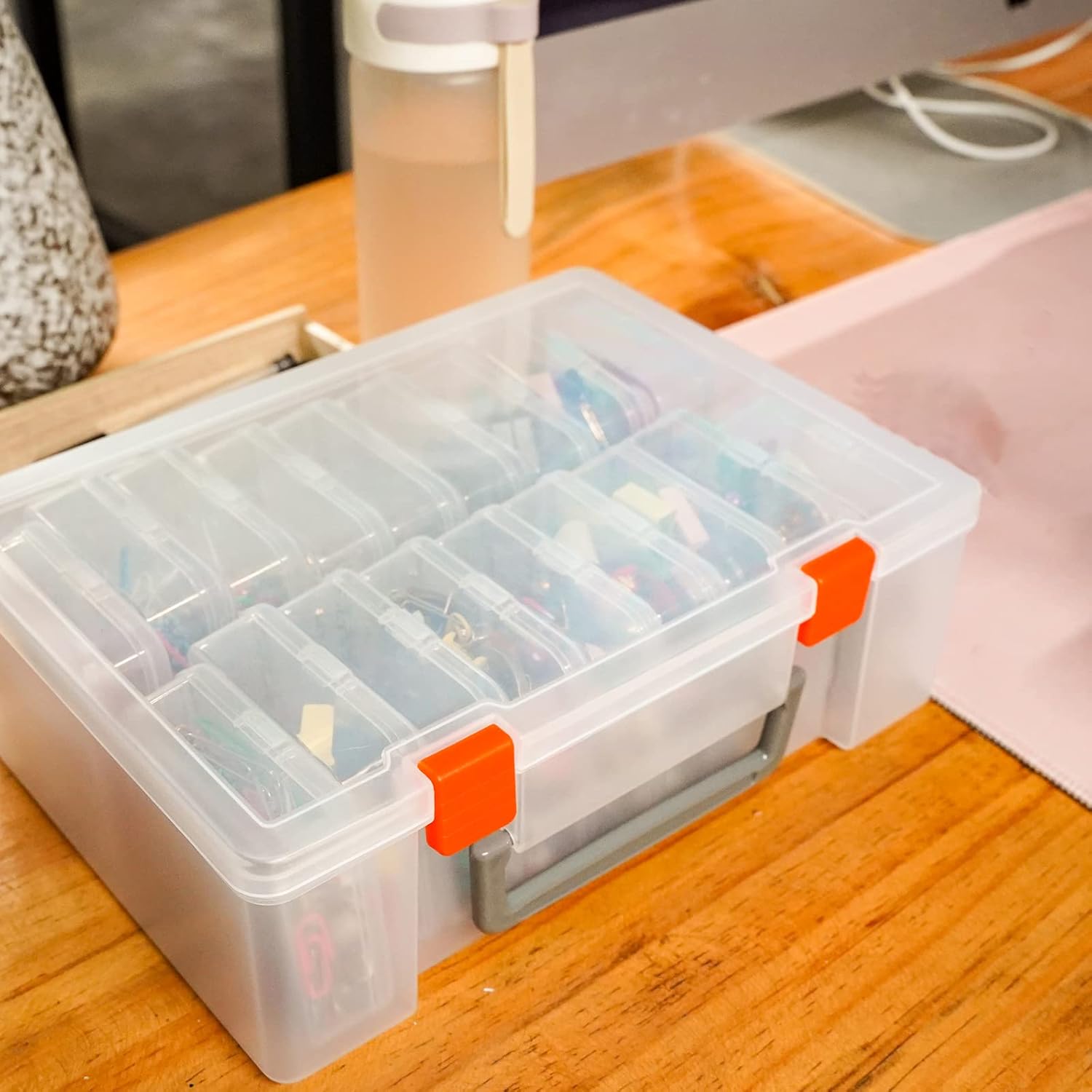 Measurement: Each small parts organizer measures about 7.5 x 7.5 x 2 cm/ 2.95 x 2.95 x 0.79 inches, and the outer big storage box measures about 25 x 19 x 8 cm/ 9.84 x 7.48 x 3.15 inches.