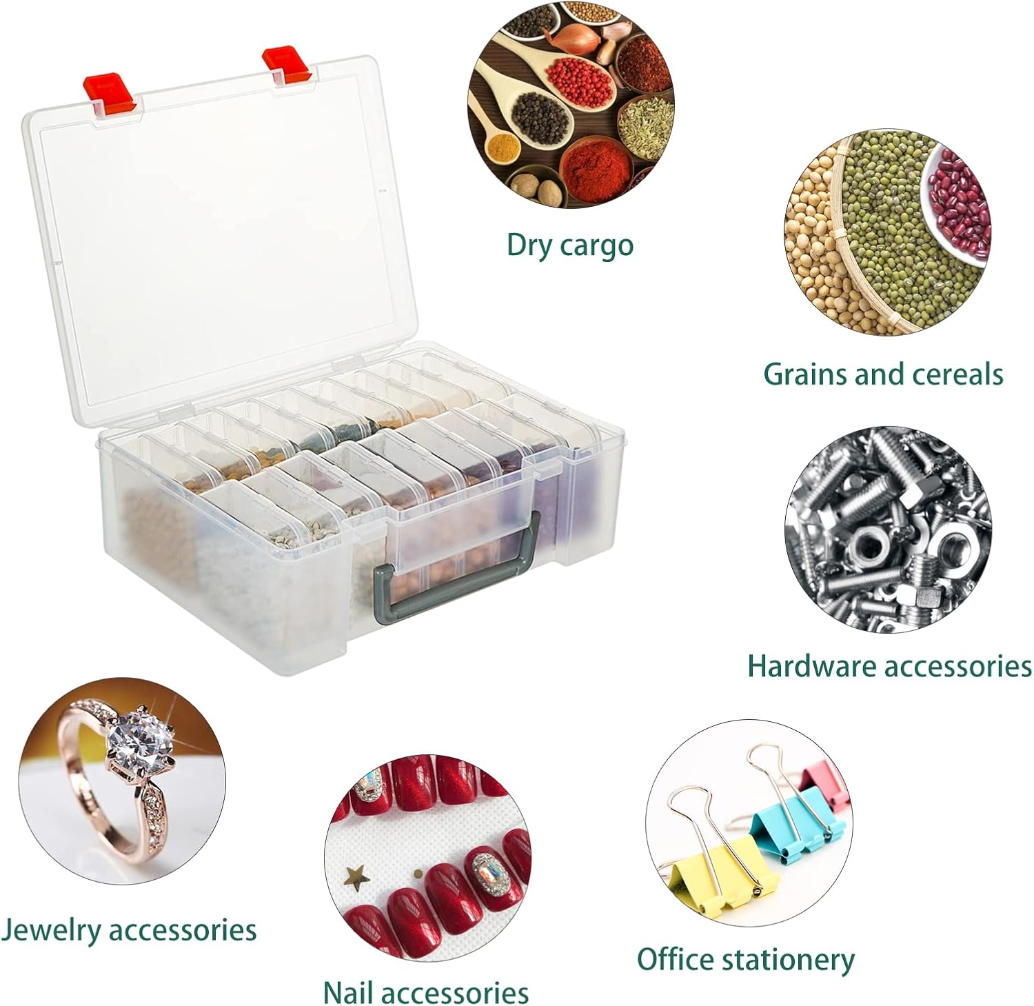 18 Pieces Small Plastic Craft 0rganizers and Storage, Transparent Box with Hinged Lid for Storage of Jewelry, Diamonds, DIY Art Craft Accessory