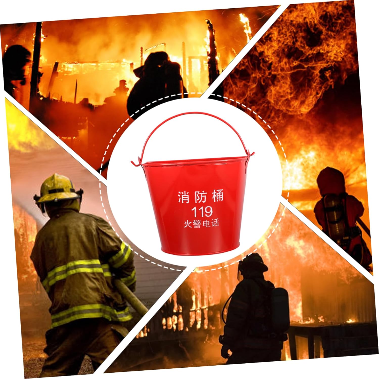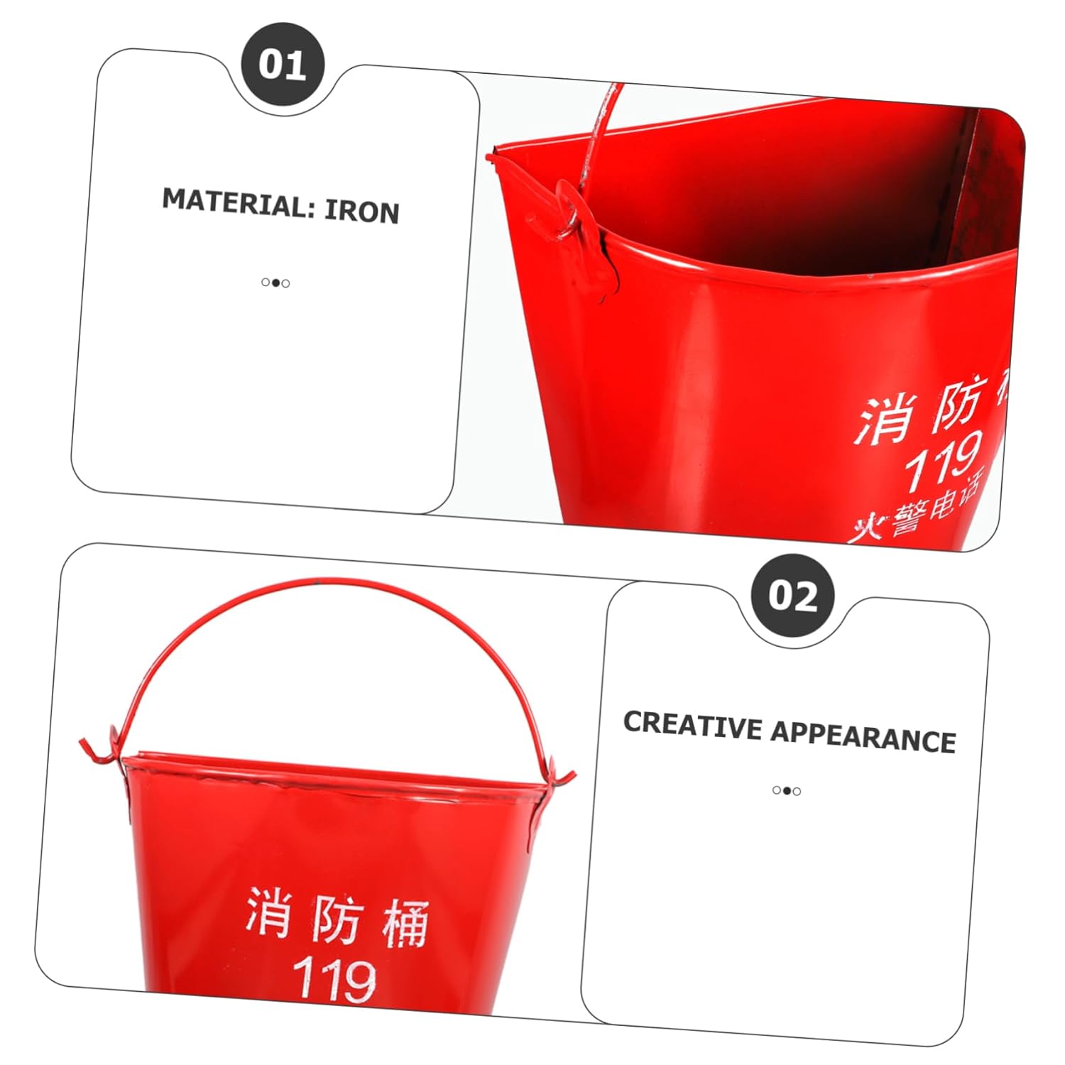– Material: Iron fire emergency equipment bucket.