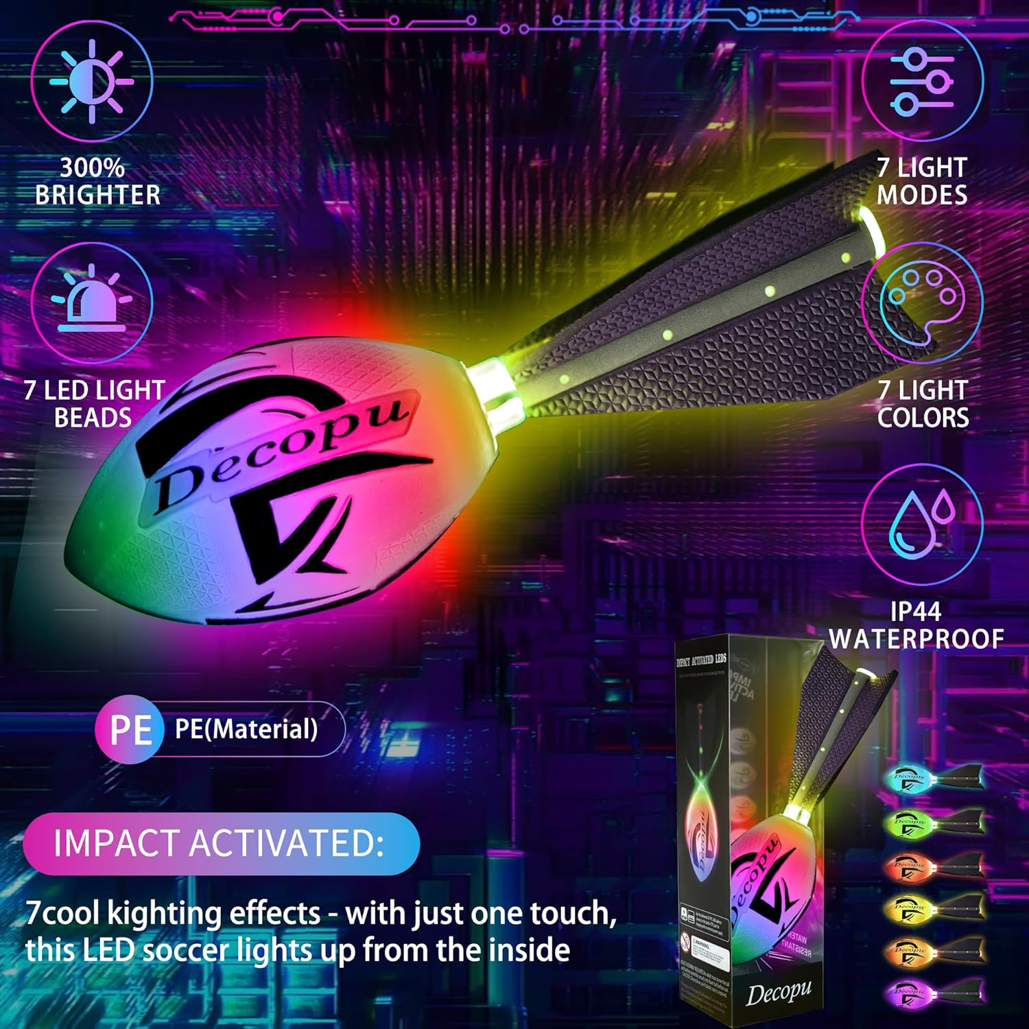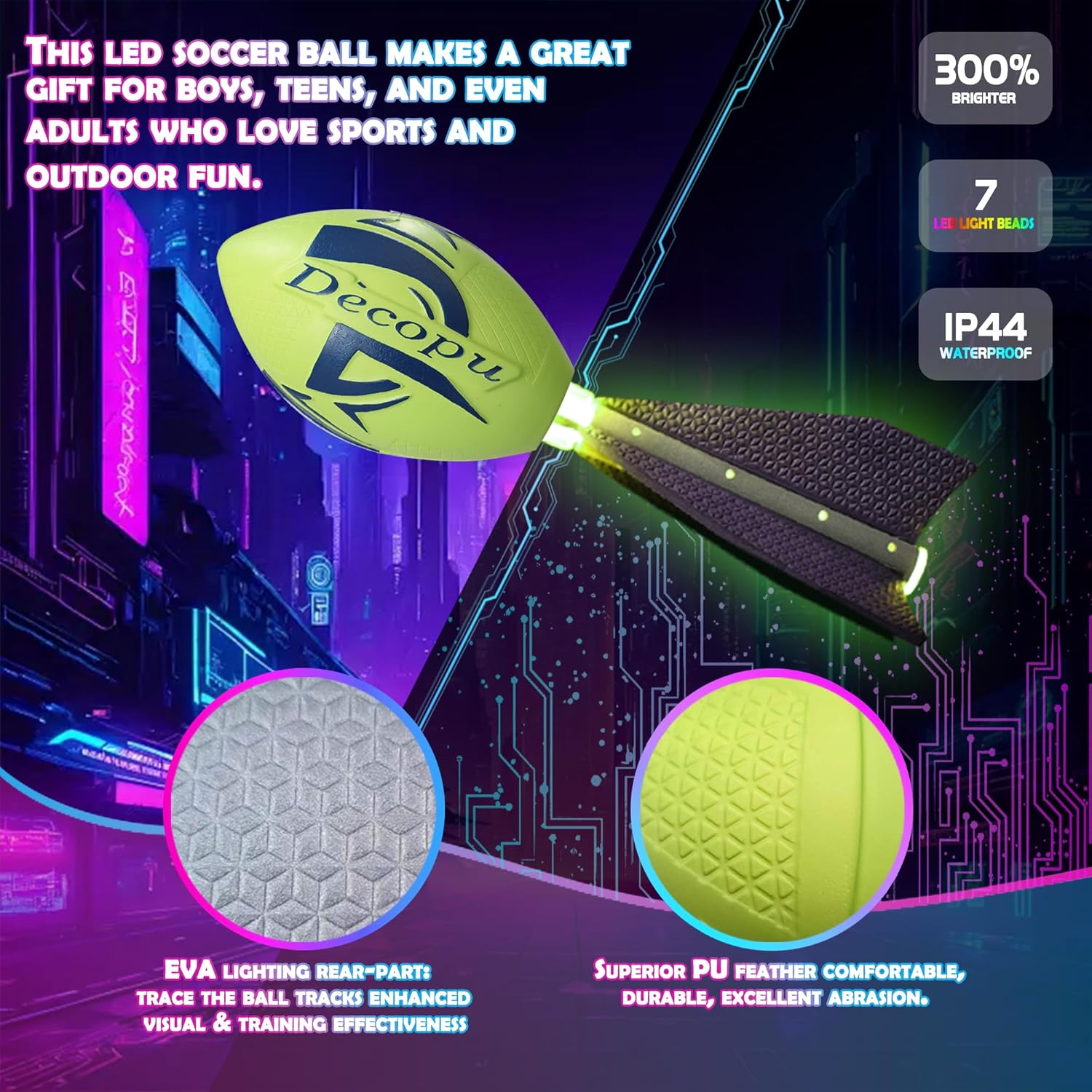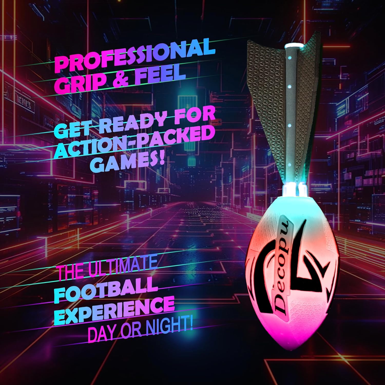 DURABLE Light Up Football:Made of high quality foam and impact-resistant plastic, it can withstand intense play and does not need to replace batteries, which saves money. Perfectly designed for outdoor toys