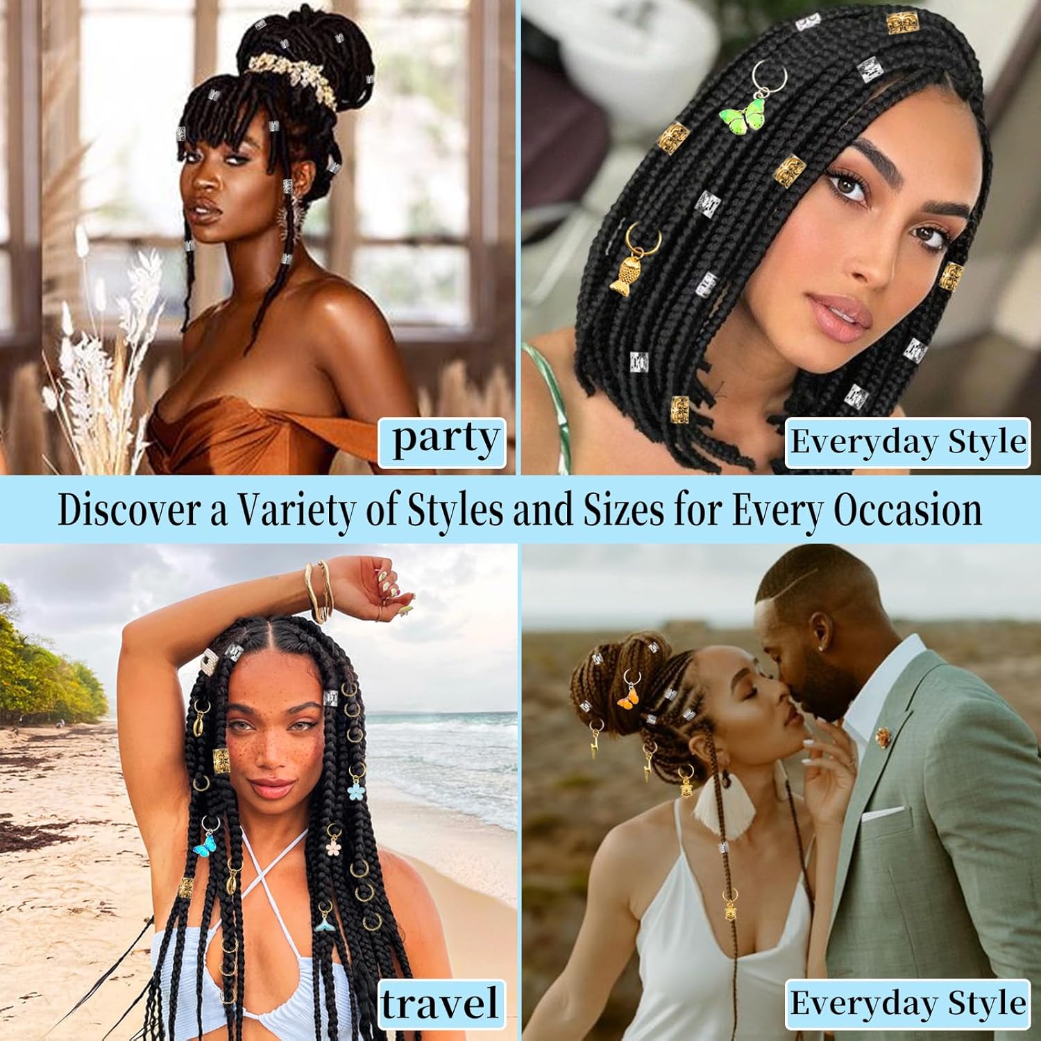【Effortless Chic】Unleash your creative spirit with our easy-to-use hair beads and hair accessories for braids. Designed for seamless integration with braids or locs, these pieces, including loc jewelry for black women and gold hair charms, promise to transform your look in an instant. With a wide range of sizes and styles, you’re guaranteed an impeccable match for a truly personalized aesthetic.