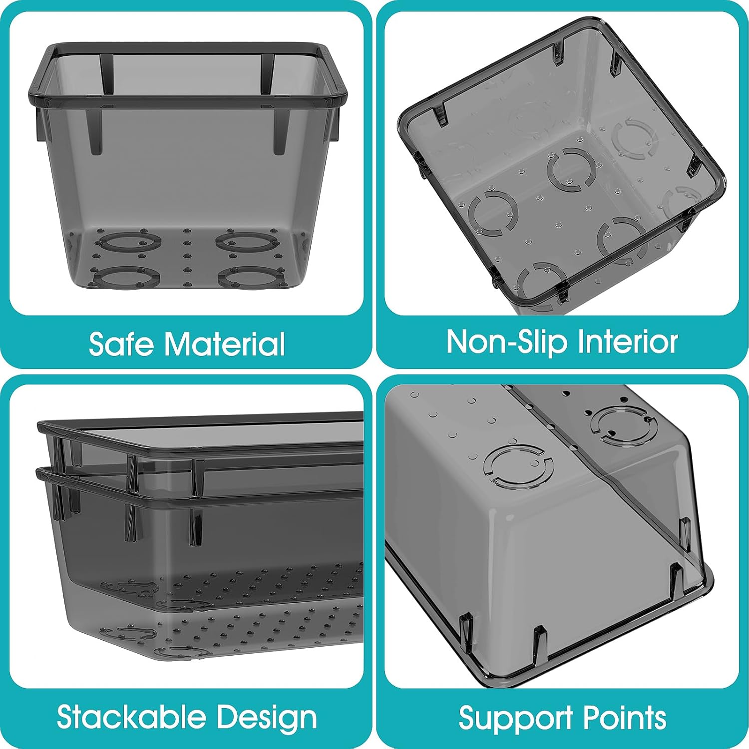 Stackable Design: These clear storage bins not only stackable but also maximize space so that your desk drawers can be effectively organized.