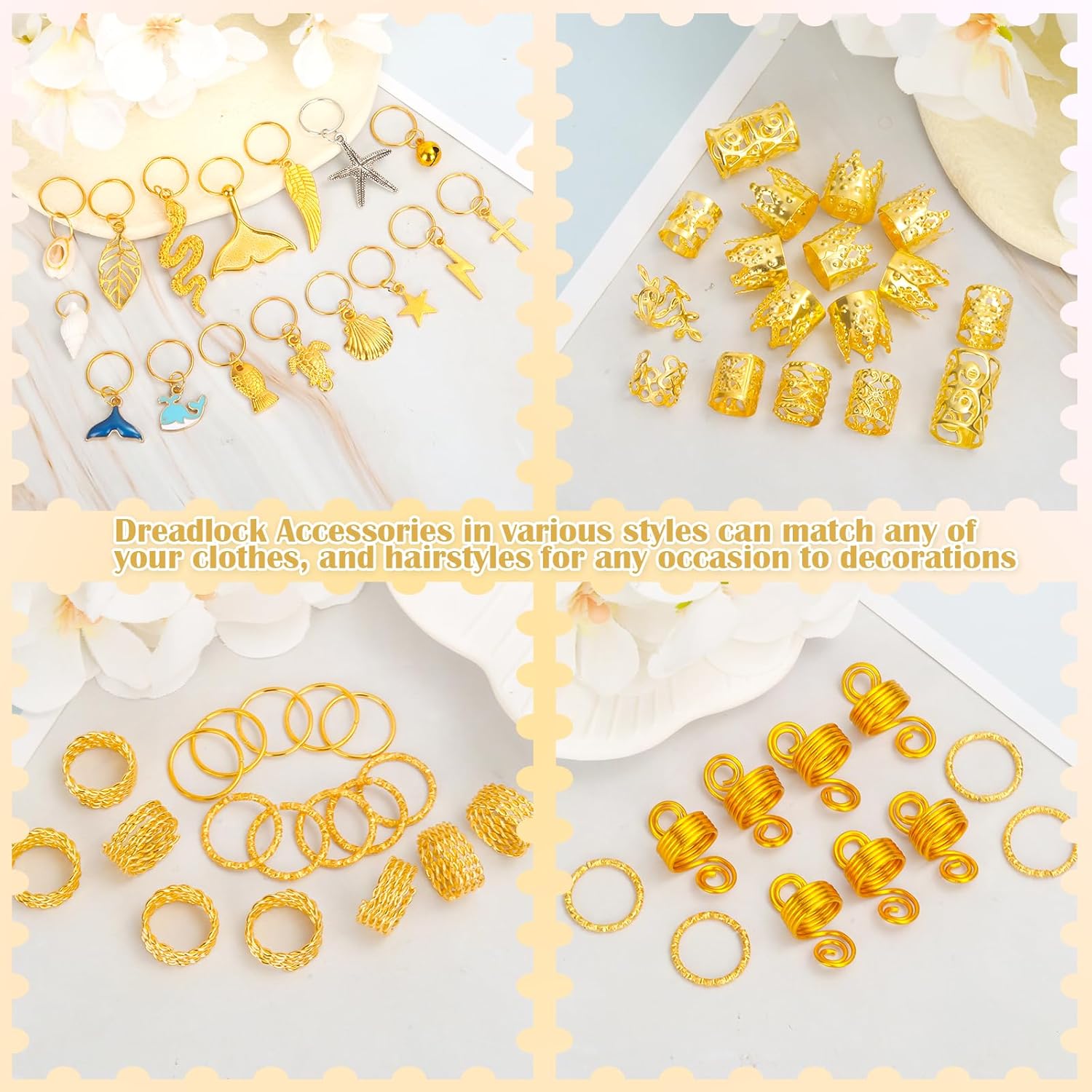 314 Pcs Hair Jewelry for Women Loc Jewelry for Hair Dreadlocks, Aluminum Gold Hair Jewelry for Braids, Dreadlock Accessories Hair Decoration with Hair Ring Cuffs Charms for Hair Braids Accessories