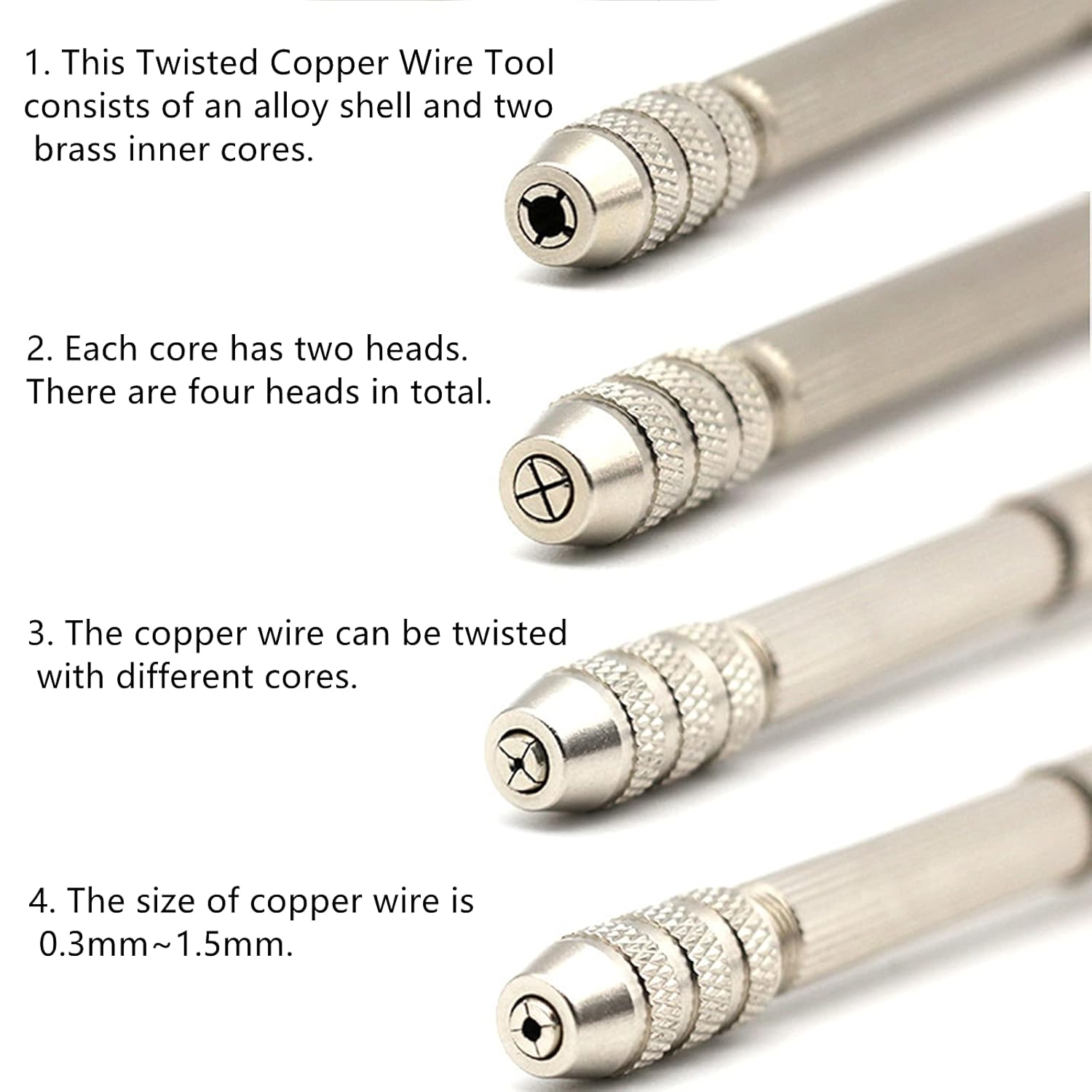 ★ Double Ended Design: The twisting copper wire tool adopts a double-ended design, and the inner cores are made of copper. Each core has two ends, a total of four ends, the replacement & accessories of the core can clamp the copper wire or small tools within the range of 0.3-3.2mm.