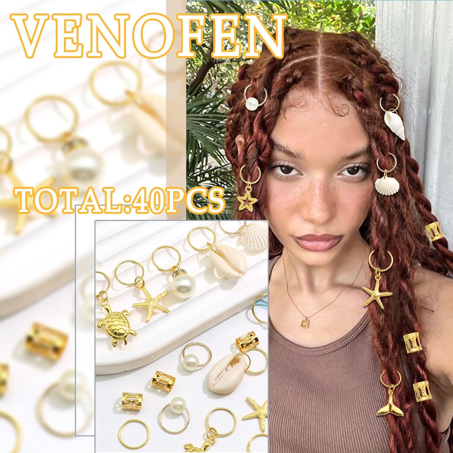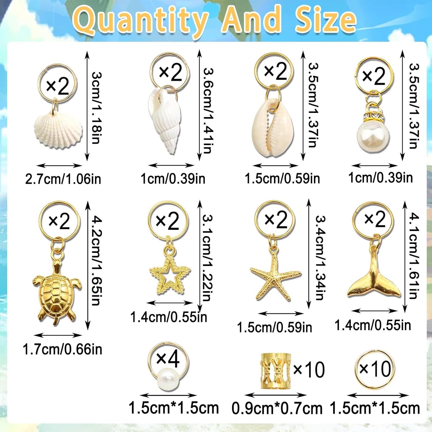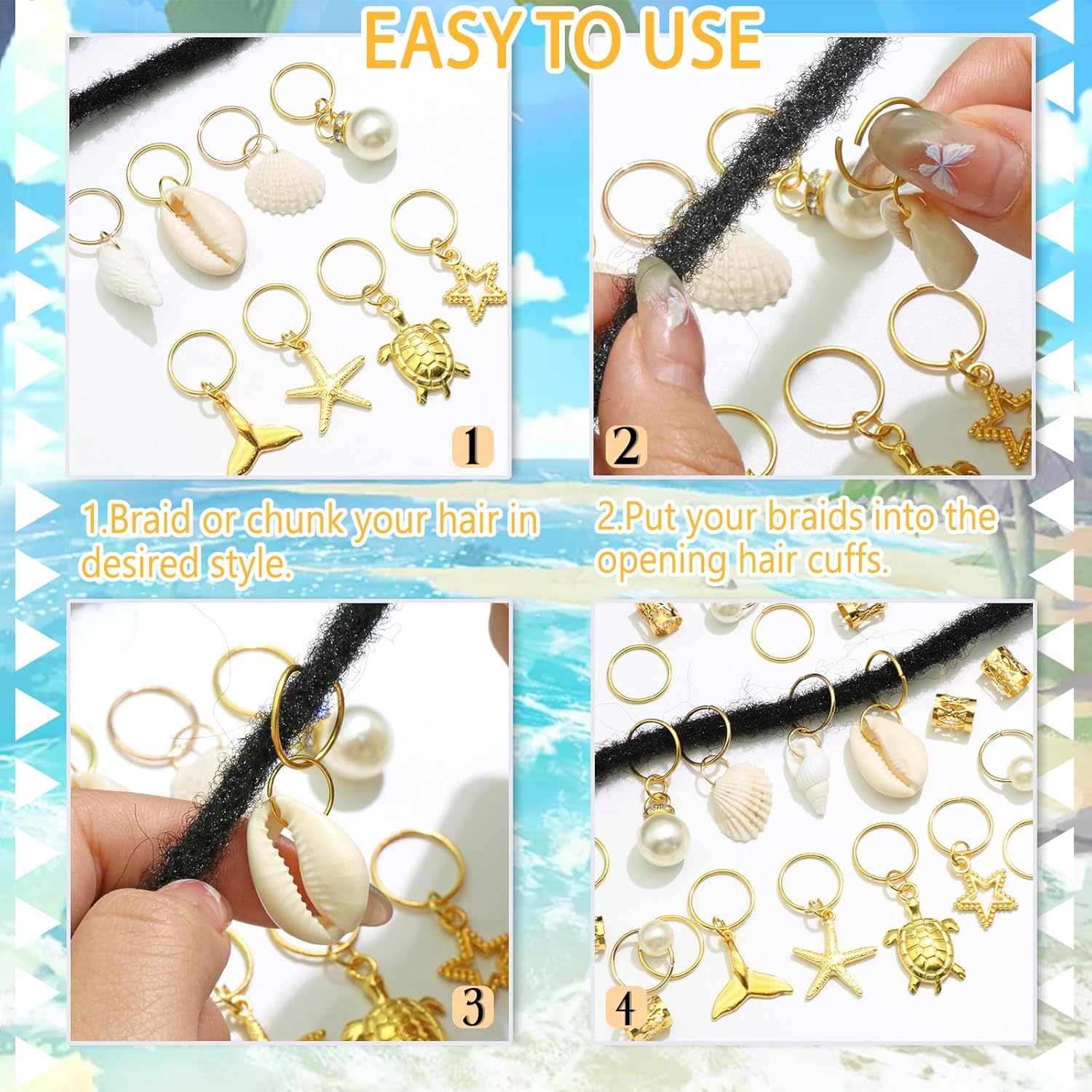 Stylish&Exquisite:One pack has 8 style hair charms,including shells braid clips,turtle and starfish hair charms,gold hair cuffs for braids.Beautiful design and glossy surface will makes your hairstyle more stylish and charming.
