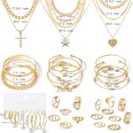 45 PCS Gold Jewelry Set for Women Dainty Dangle Earrings,Elegant Knuckle Rings,Adjustable Bracelets and Necklaces,Perfect Fashion Anniversary Birthday Party Gift,Trendy Jewelry Pack