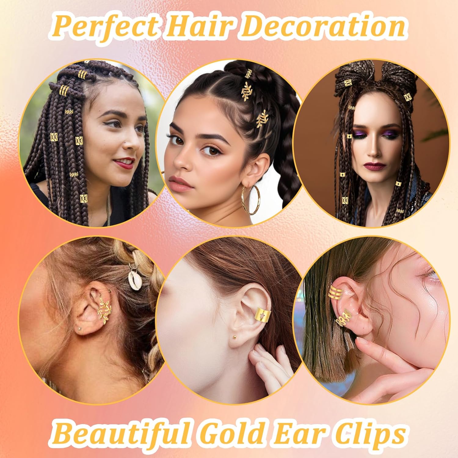 【50pcs Hair Cuffs for Braids】: You will receive 50 pcs of exquisite gold hair accessories for women, including various styles and sizes of hair clips for braids