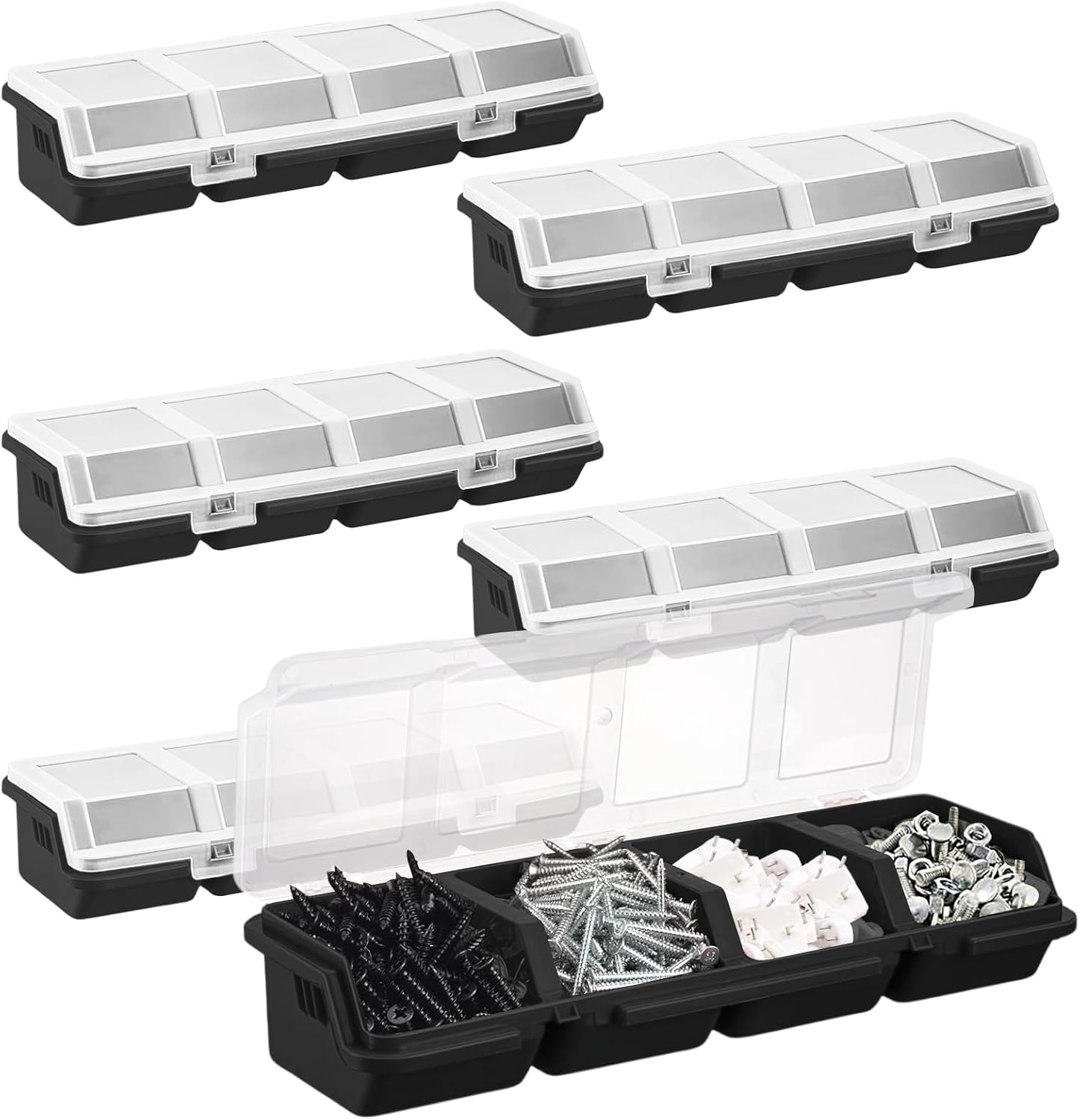 Package Include: you will get 6pcs black parts storage bins, Enough for your daily use. the screw organizer boxes can effectively help you store packaging parts or screws, avoid messy and loss