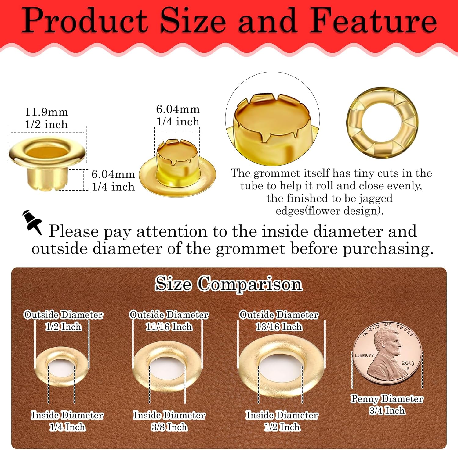 – Please choose the right size that you need according to the product dimension description(Grommet Outside Diameter: 1/2 inch; Grommet Inside Diameter: 6mm, nearly 1/4 inch, but slightly less than 1/4 inch).