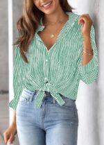Stylish striped blouse, button down closure, collared long sleeve shirt, chest pocket, sexy v neck make you look more slender and charming, show your confidence and fashionable appearance.
