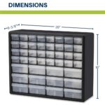 HEAVY DUTY CABINET WITH 44 DRAWERS: The 44-drawer small storage cabinet is made in the U.S.A. from rugged, high-impact plastic and measures 20″ W x 6″ D x 16″ H; Organizer drawers – 6″ x 4-1/2″ x 2-3/16″ (large); 6″ x 2-1/4″ x 1-5/8″ (small)