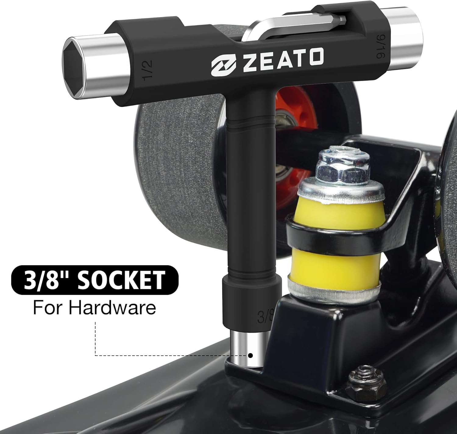 [Multi-functional Tool]: A multi functional skateboard T tool that allows you to adjust axle nuts, mounting hardware, and the kingpin nut on the top of the truck; which is perfect for completing skateboard assembly