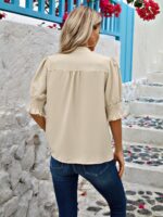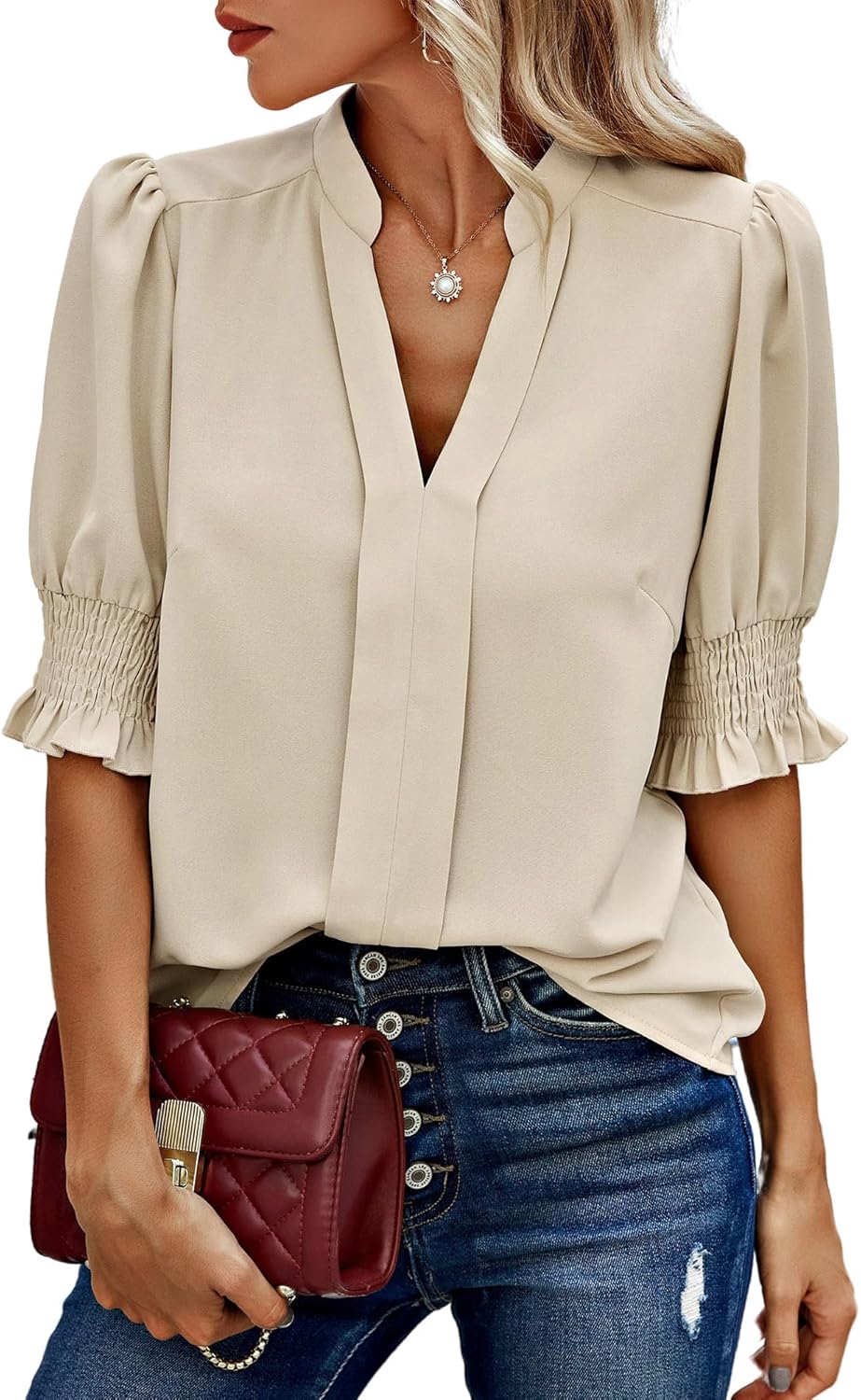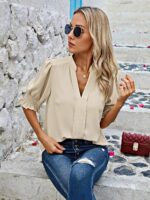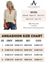 Angashion Women Tops Short Sleeve – Summer Casual V Neck Solid Color Flowy Trendy Tunic Blouses Shirt