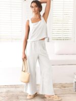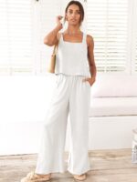 Features — Square Neck / sleeveless / crop top/ High Waist Wide Weg