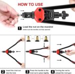 AOBEN 16″ Rivet Nut Tool, Professional Hand Rivet Nut Setter Kit with 12 Interchangeable Metric & SAE Mandrels, 145Pcs Rivnuts and Rugged Carrying Case