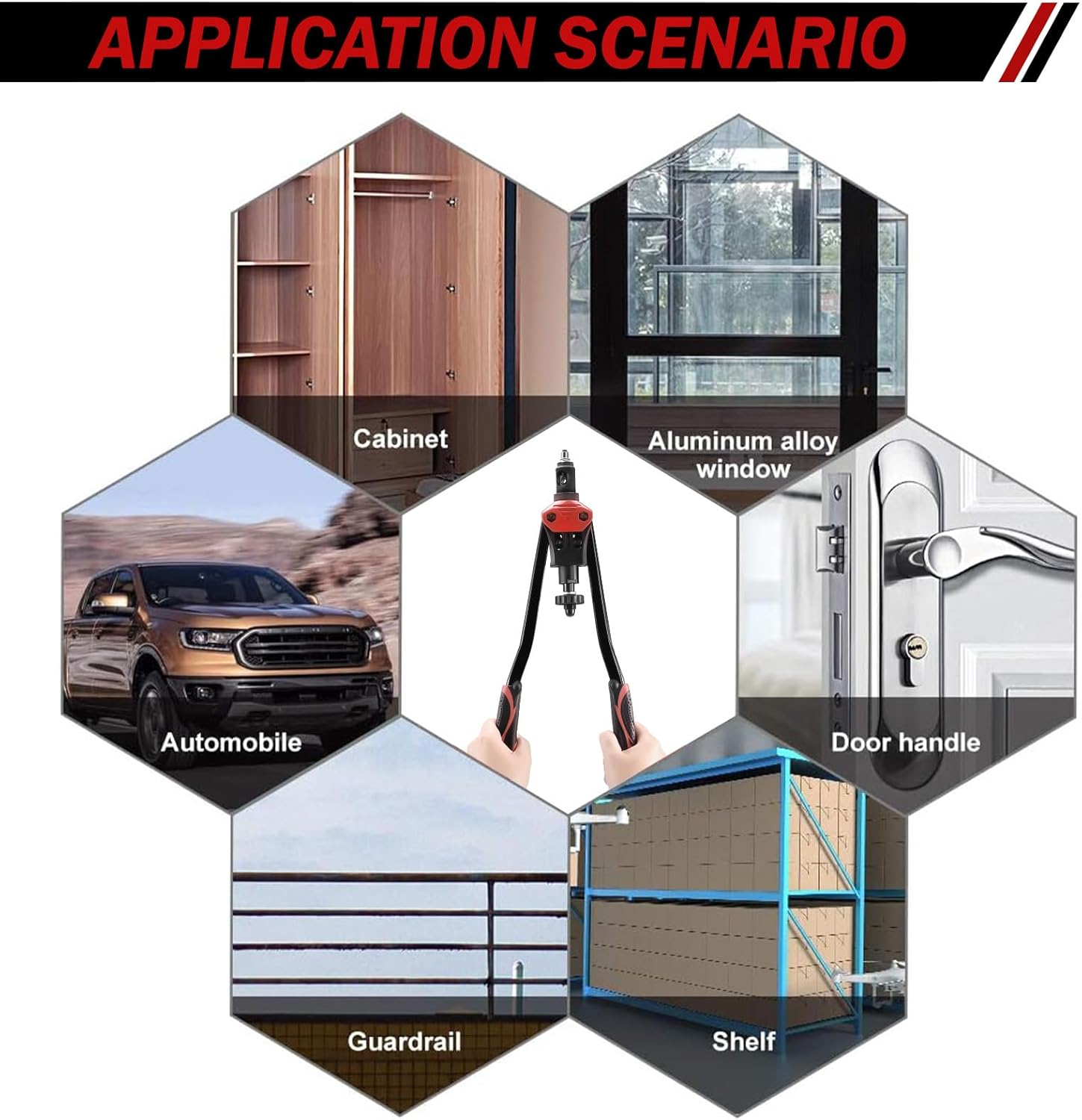 16 inch longer steel arms and ergonomic handles with double compound hinges maximizing leverage, it can save more effort than those normal 13 and 14 inches rivet nut tool do.