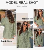 Astylish Women Oversized Button Down Shirts 3/4 Sleeve Blouse V-Neck Textured Shirts