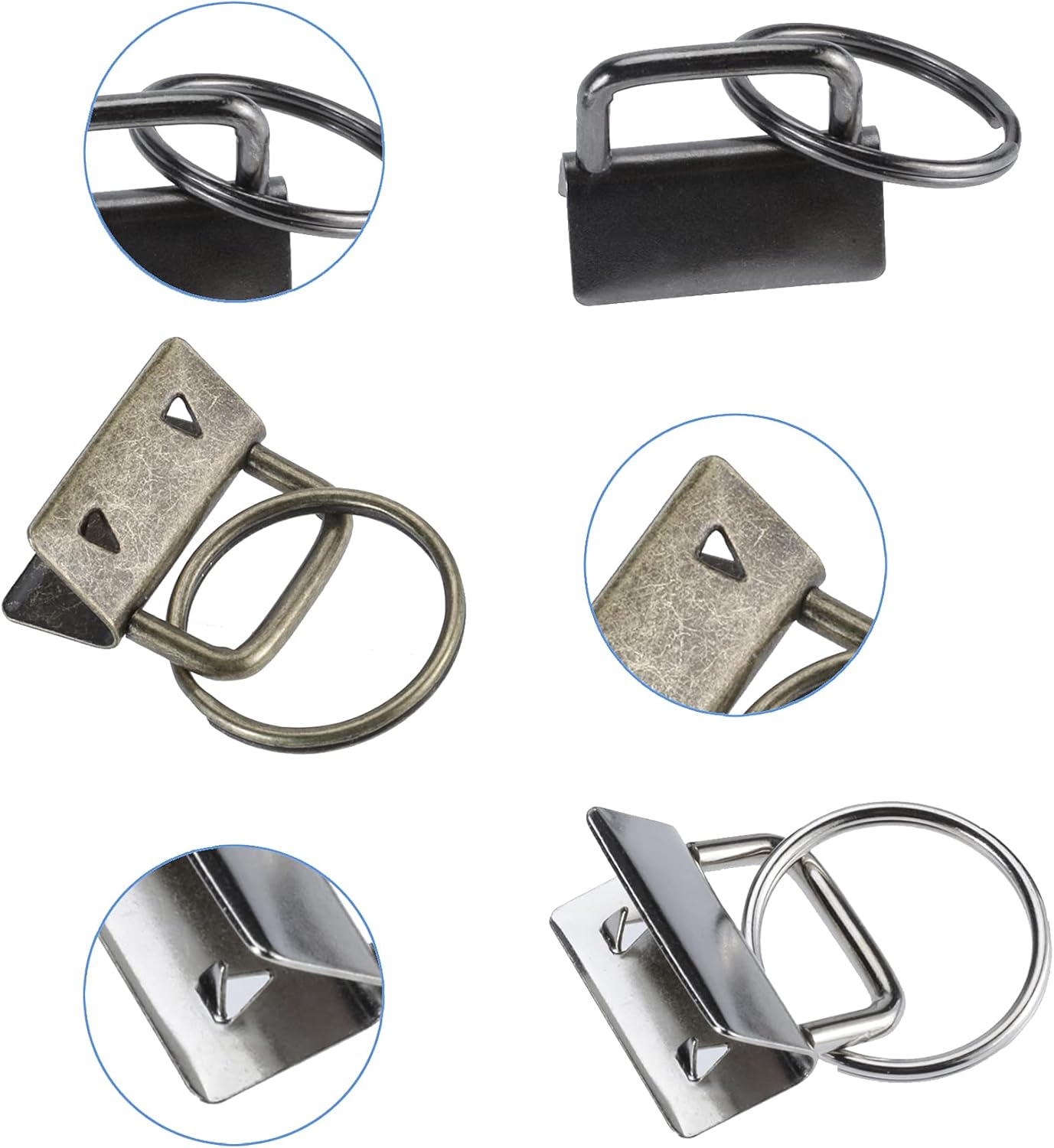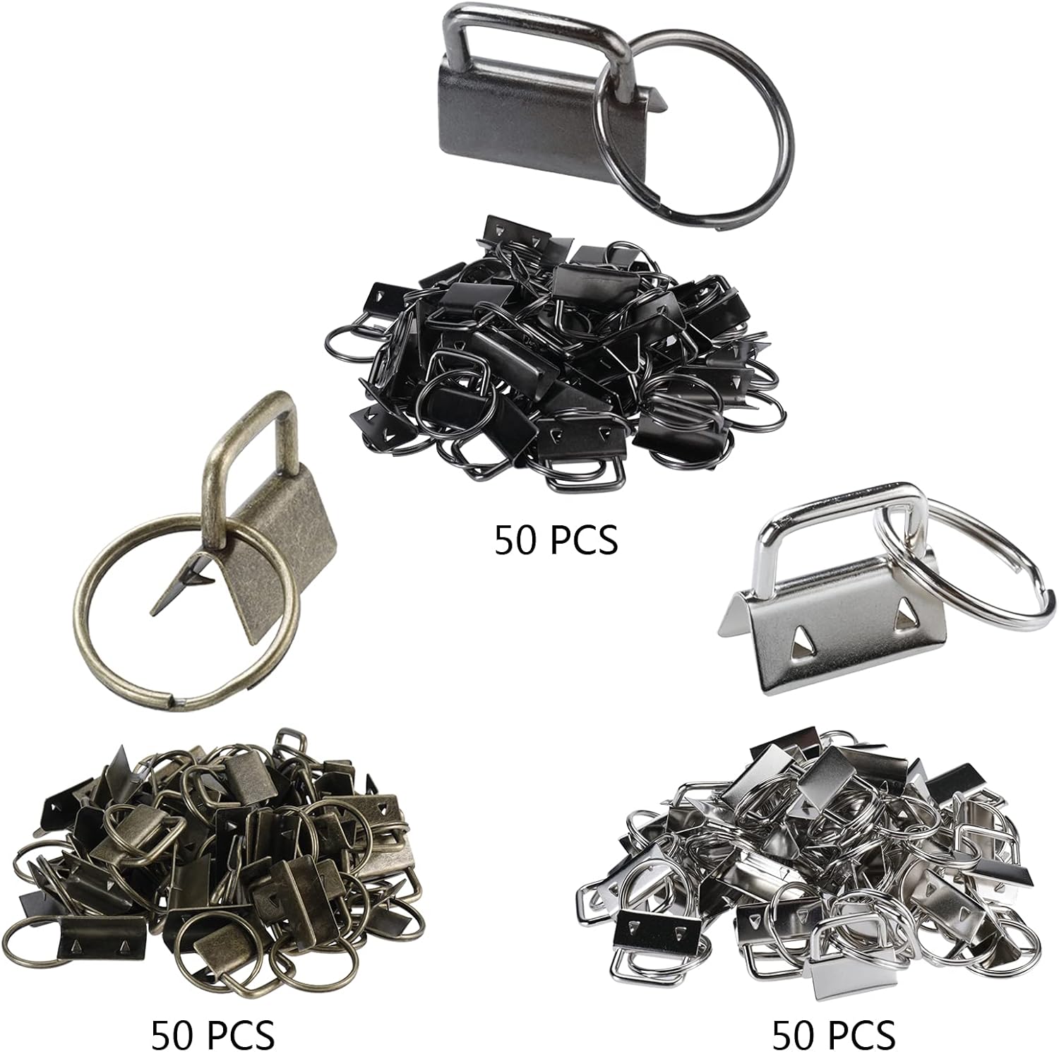 AuInn 150 PCS Key Fob Hardware 3 Colors Keychain Fob Wristlet Hardware with Key Ring 1 Inch (50 Sets Each Color)