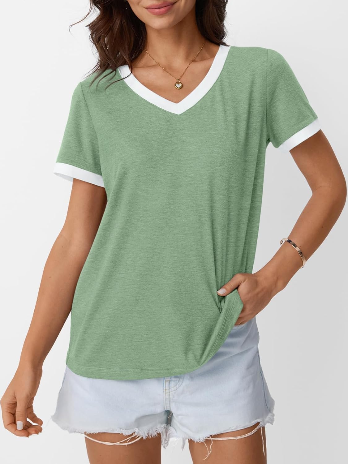 Customers find the t-shirt flattering, comfortable, and soft, with the color matching exactly as pictured. The material quality receives positive feedback, with one customer noting it’s a nice lighter weight fabric. While some customers say it runs true to size, others find it too small. Customers appreciate its versatility, with one mentioning it pairs well with shorts or jeans, and consider it good value for money.