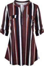Customers find the tunic flattering, particularly on full-figured women, and appreciate its versatility for both casual and dressy occasions, noting it pairs well with leggings. The material quality receives mixed feedback – while some praise its durability, others find it thin and not to their liking. The fit is also mixed, with some finding it true to size while others say it’s somewhat small.
