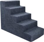 Best Pet Supplies Dog Stairs & Steps – Foam Steps for Small Dogs & Cats, Non-Slip Indoor Balanced Pet Step Support, Dog Ramp, No Assembly, Dark Gray Linen, 5-Step (22.5-inch Height)