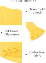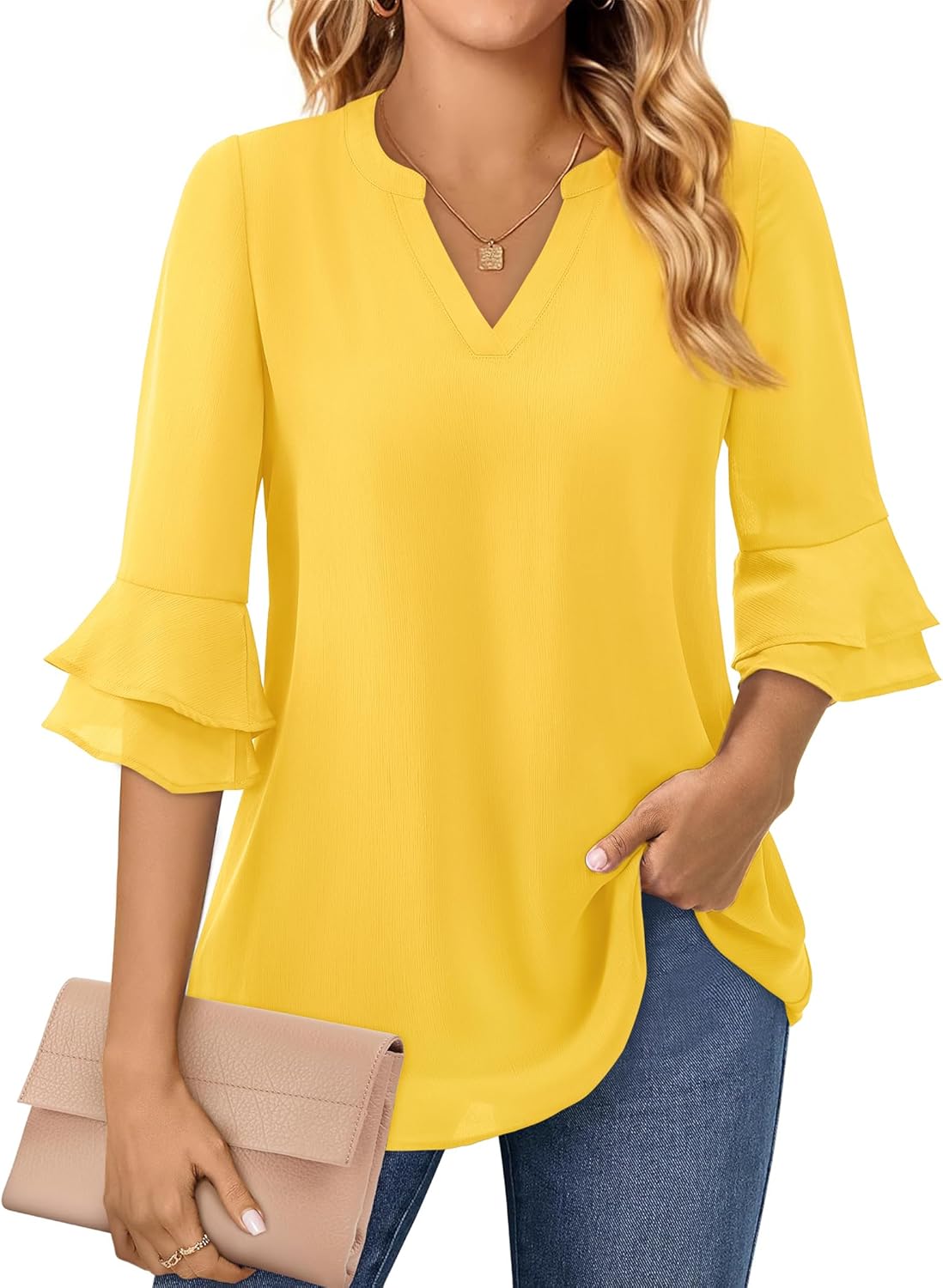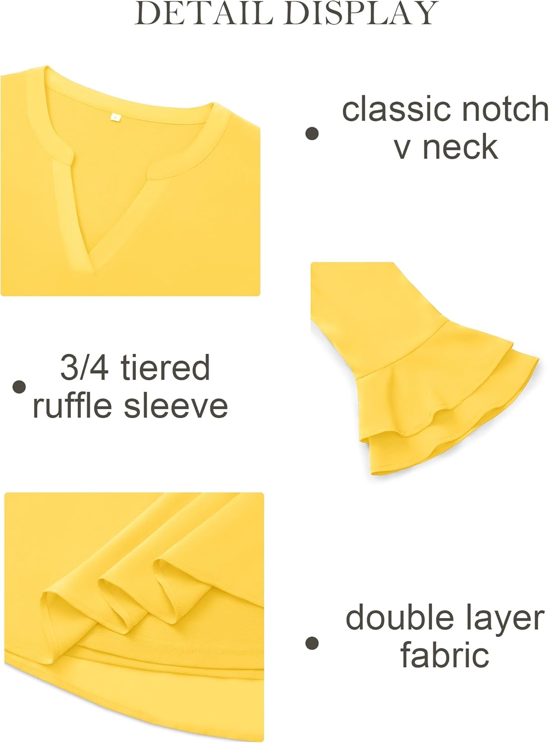 Blouse for Women Dressy Casual Spring Summer 3/4 Ruffle Sleeve Tops Double Layered Business Casual Tunic Work Shirts