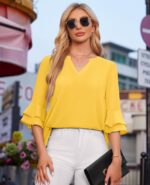 Be the first to review “Blouse for Women Dressy Casual Spring Summer 3/4 Ruffle Sleeve Tops Double Layered Business Casual Tunic Work Shirts”