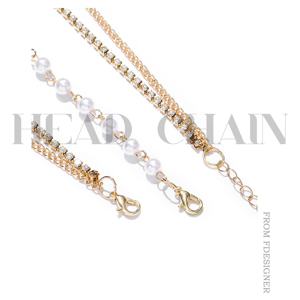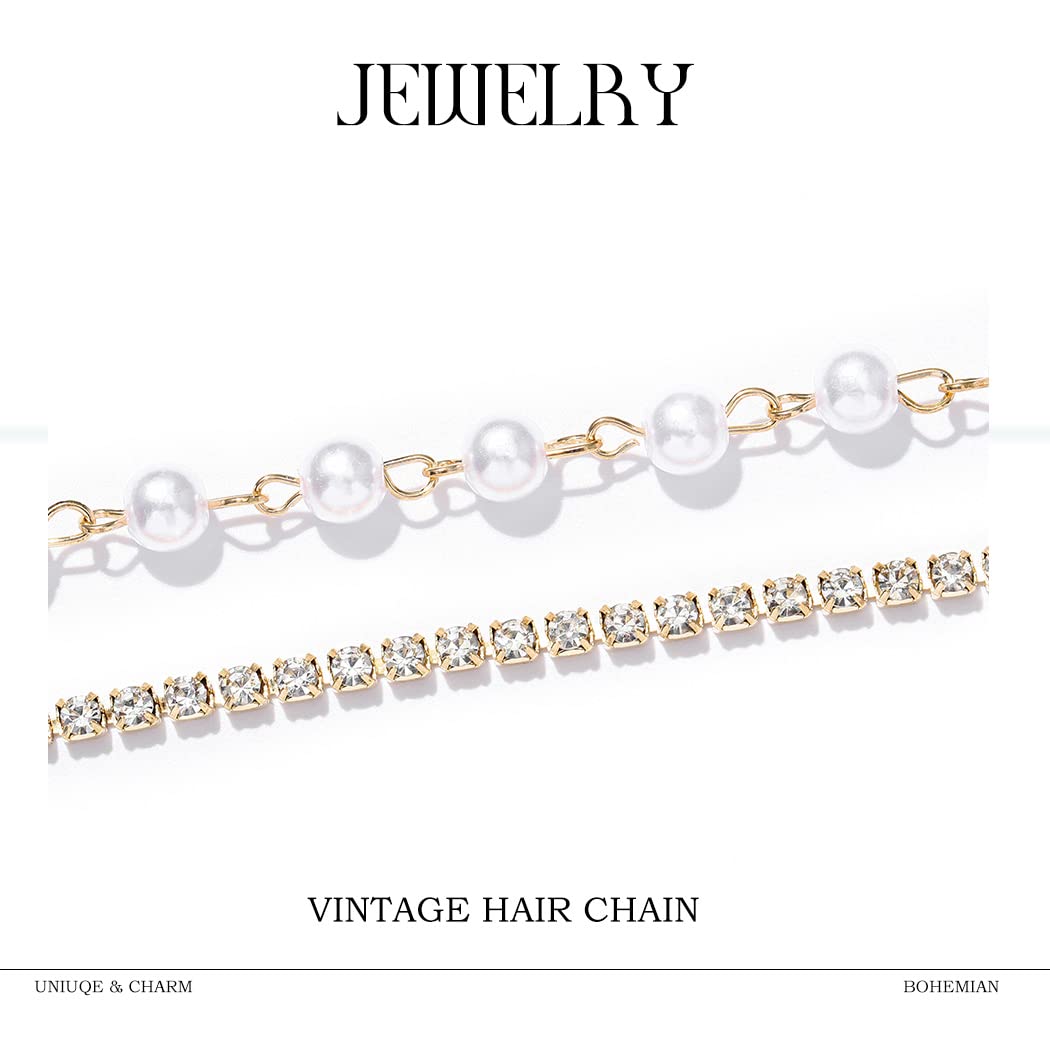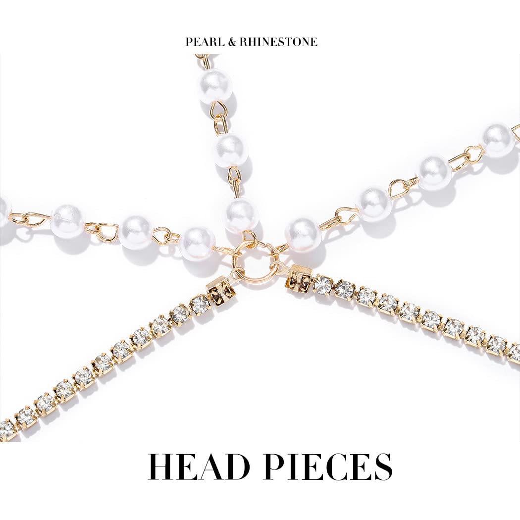 Boho Pearl Head Chain Vintage Crystal Headpieces Wedding Rhinestone Hair Jewelry Party Festival Hair Accessories for Women and Girls (Gold)