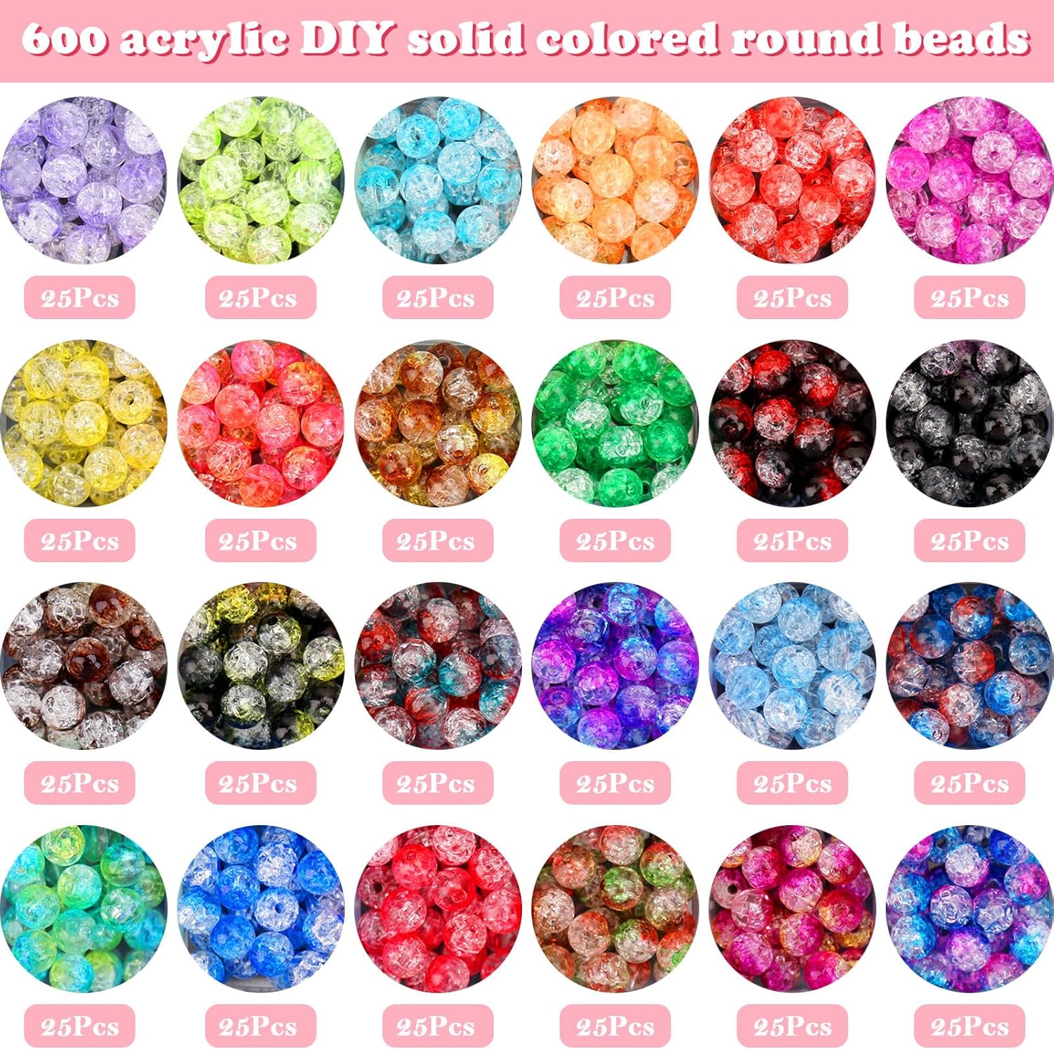 Acrylic Crackle Beads Jewelry Making Kit: About 600 pieces acrylic crackle beads are included in the package, 25 pieces for each color. Great amount for your jewelry making or DIY craft. Acrylic crackle beads are the perfect combination of affordability, versatility, and beauty. They come in a wide range of colors, making them ideal for creating eye-catching and unique jewelry designs. Plus, they are durable and easy to work with, making them perfect for both beginners and experienced jewelry makers.