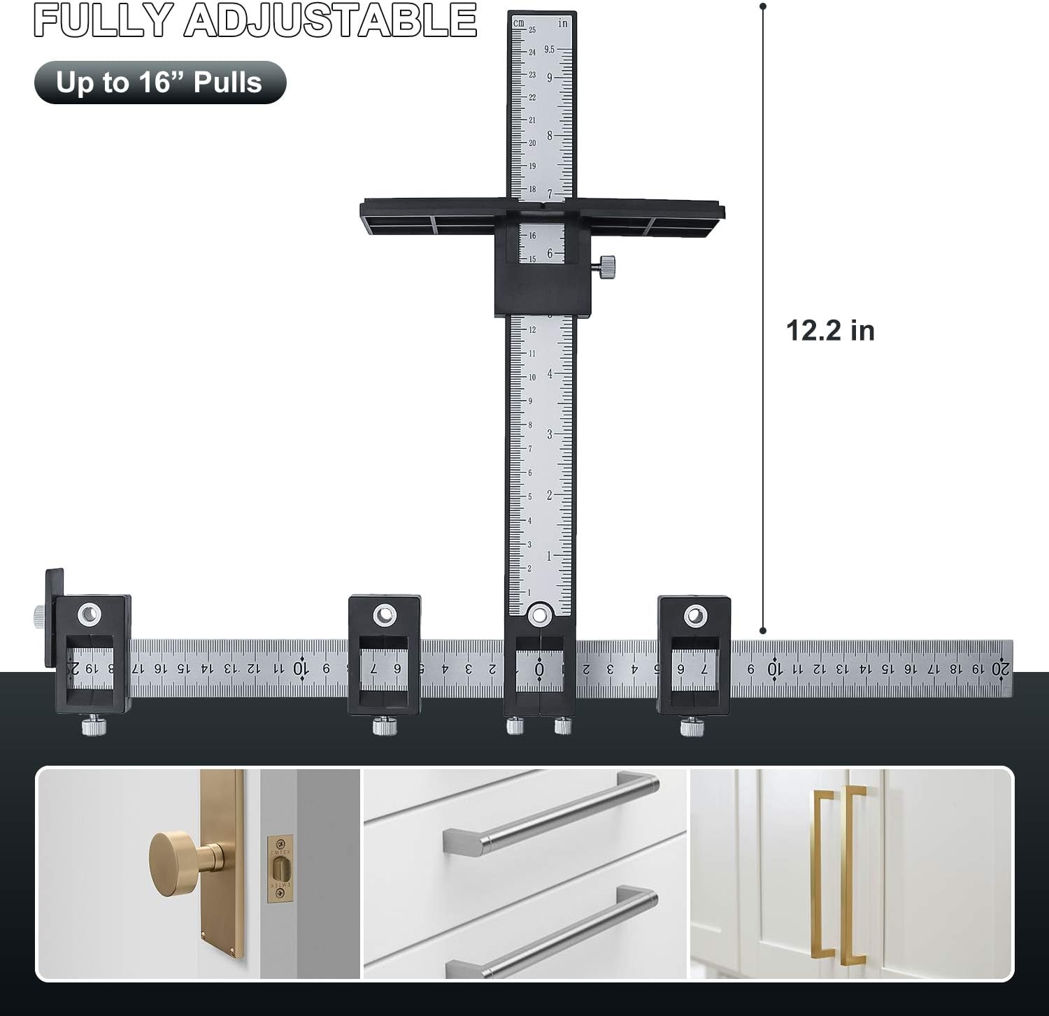 EASY TO USE AND SAVE YOUR TIME — Cabinet Hardware Jig makes set up simple and quick. The quick-release Drill Guide Block makes set up simple,and easy to setup for any length,set it up once and use it repeatedly -This template jig lets you measure out perfect hole positions for cabinet handles, pulls, and knobs.