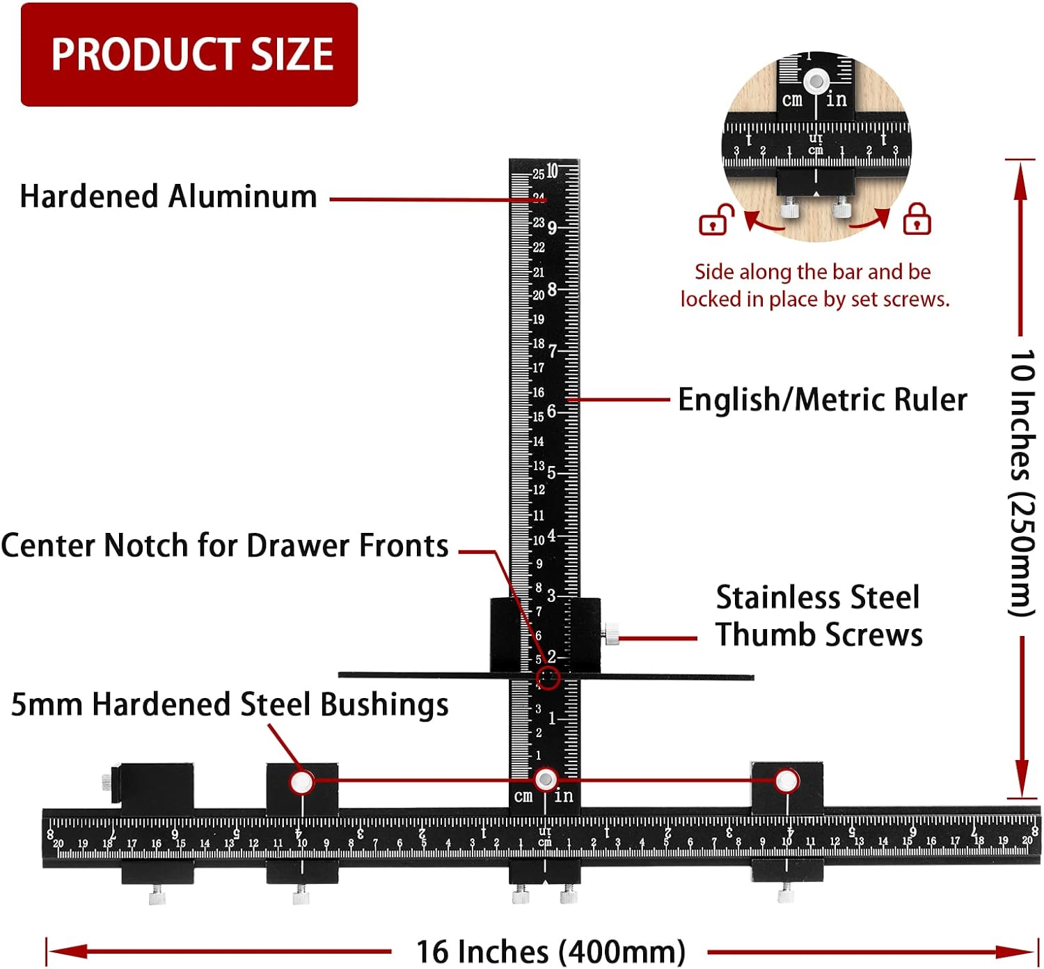 SOLIKE drawer pull jig is an excellent choice for any enthusiast and savvy worker who is looking for fixtures to locate holes in woodworking cabinets. The measurement scale in our Cabinet Hardware Jig fixture is very suitable to save time after measurement because it has a stainless steel scale, you can also use it to measure in inches and centimeters.
