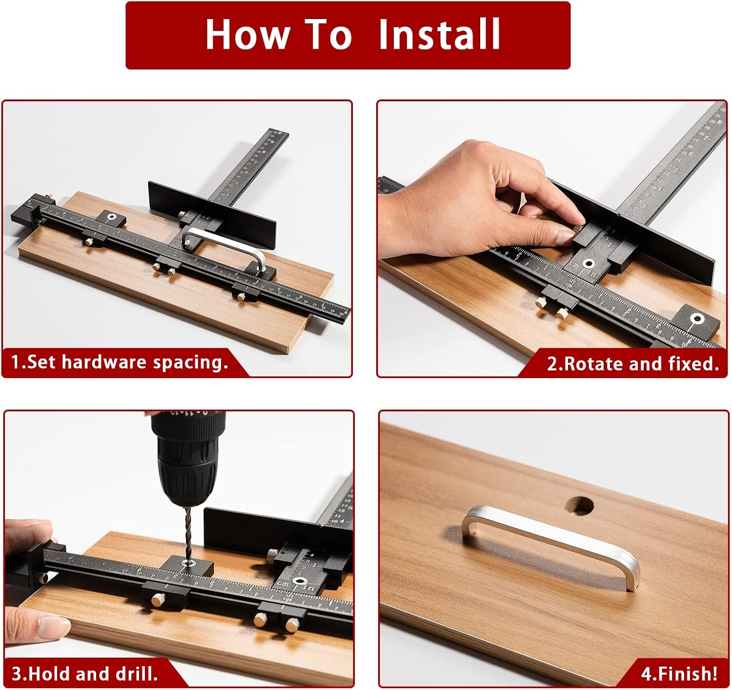 【All Aluminum Alloy】All aluminum alloy and no plastic. All the parts of the jig are precisely processed many times. Every part of the cabinet hardware jig is made of forged aircraft-grade aluminum alloy. Ensure the jig’s premium durability, high corrosion resistance, high strength, Won’t Fade