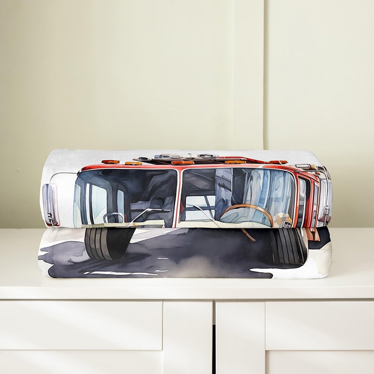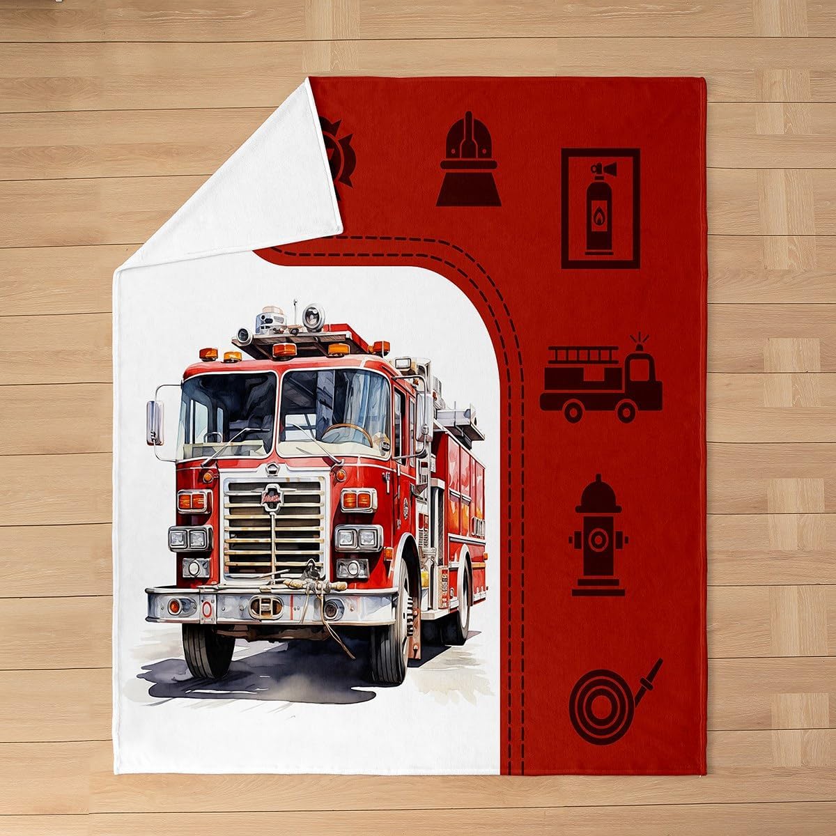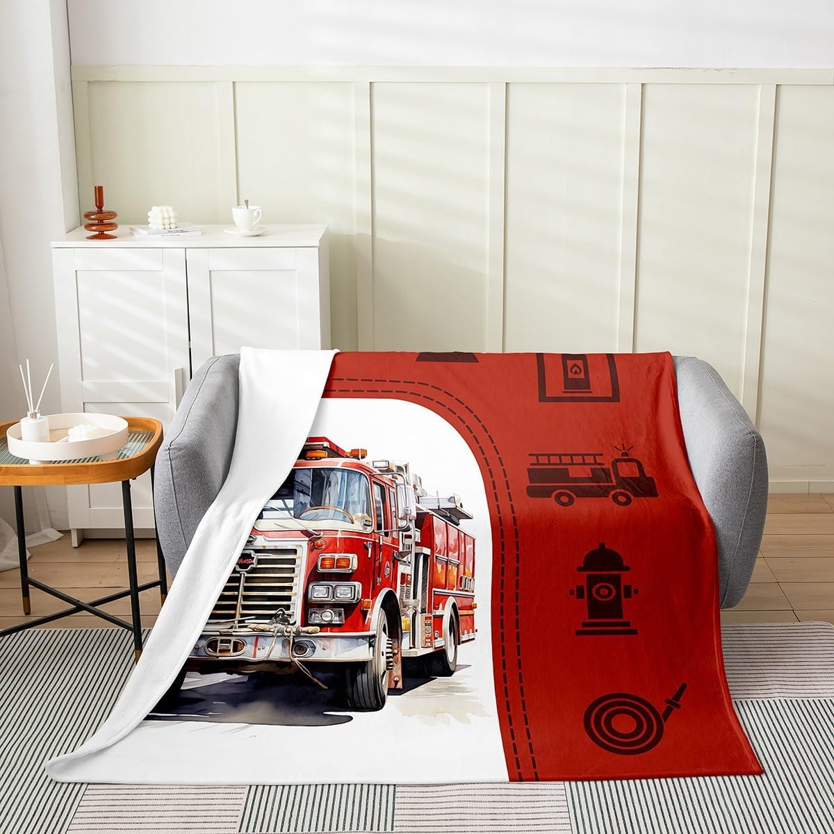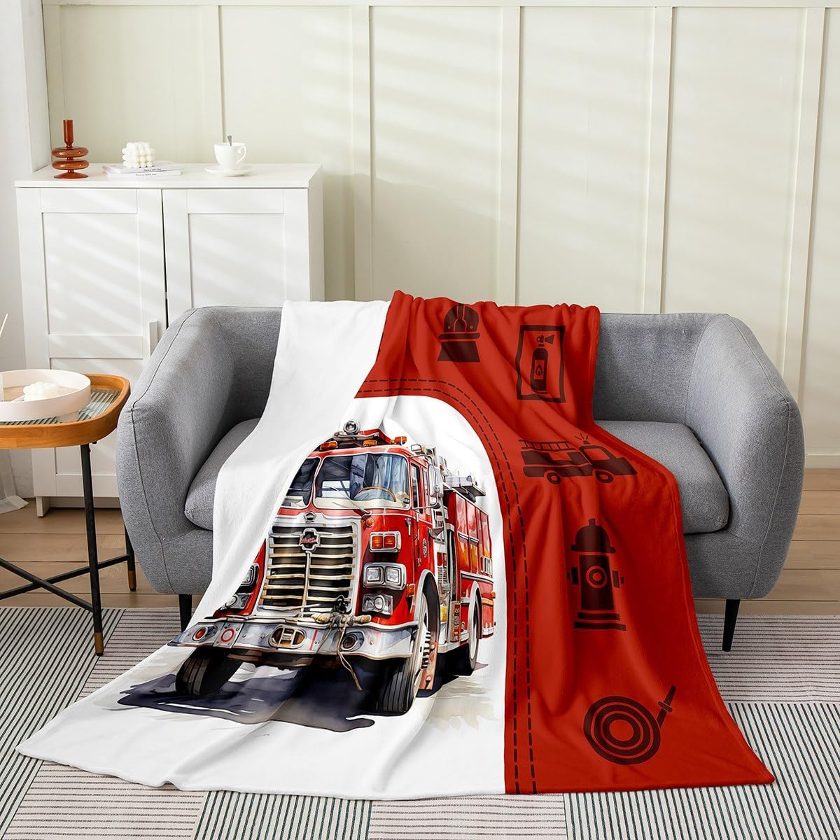 Castle Fairy 3D Fire Truck Throw Blanket 40×50 Fire Fighting Equipment Silhouette Flannel Blanket for Kids Teens Adults Red Grid Watercolor Fire Engine Fleece Blanket for Living Room Couch