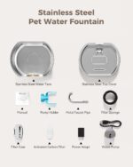 Cat Water Fountain Stainless Steel: 108oz/3.2L Cat Fountain for Drinking- Pet Water Fountain for Cats Inside – Automatic Cat Water Dispenser Bowl – Cat Feeding & Watering Supplies – Water Level Window