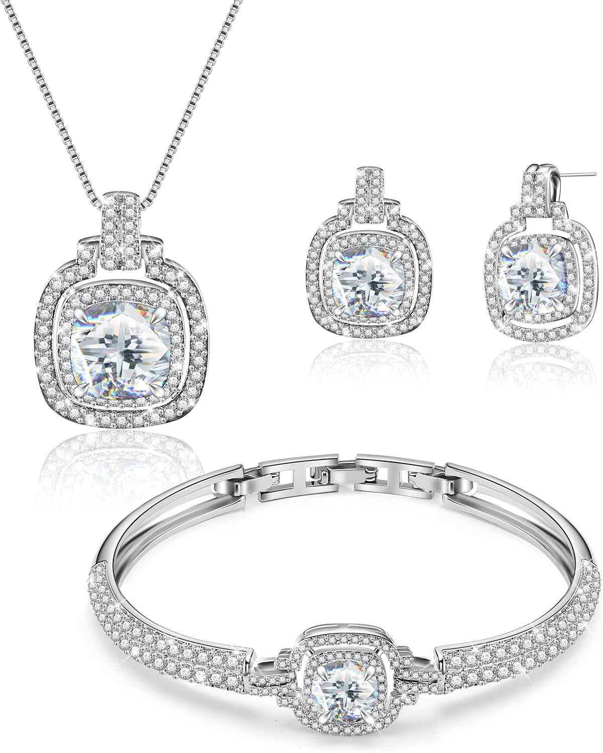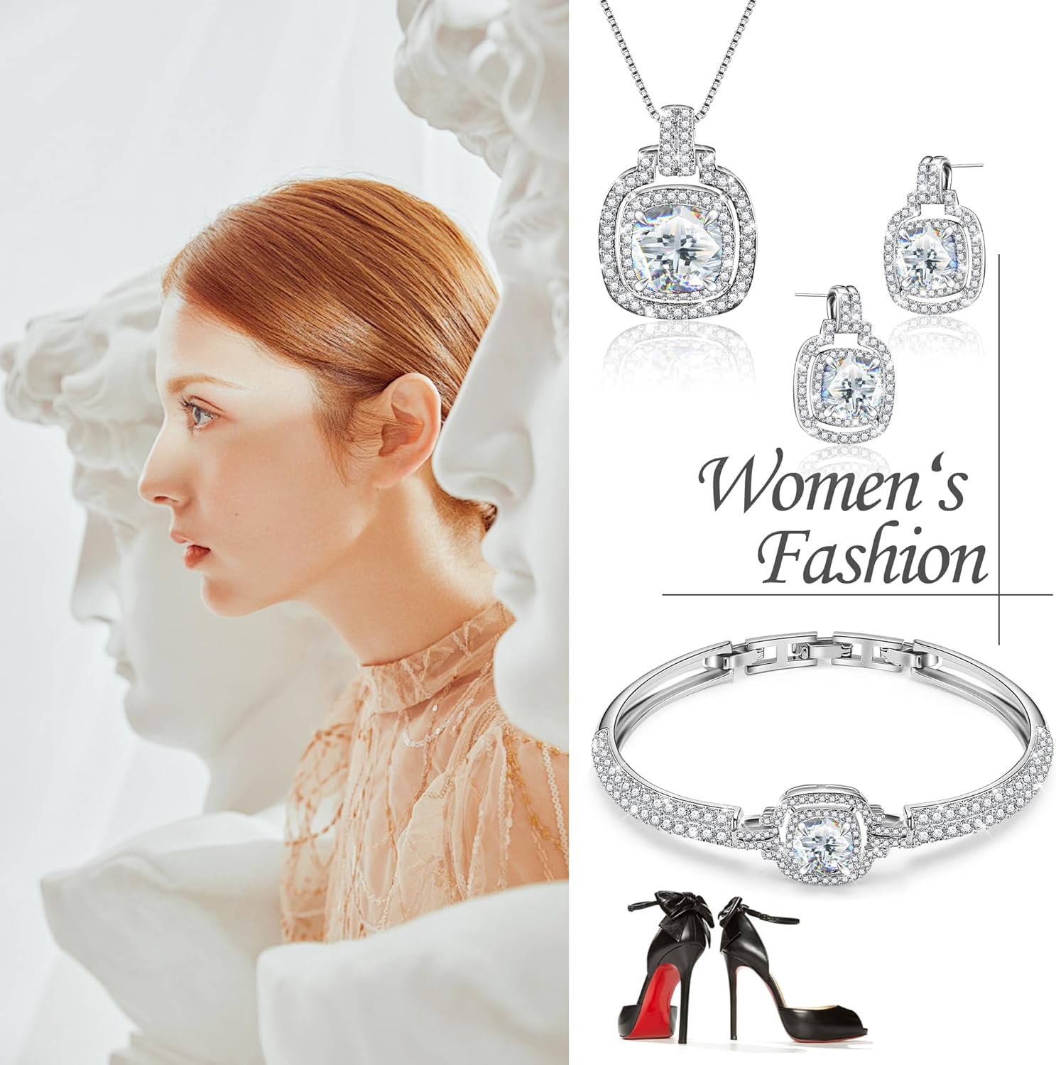 Celestial Whispers Crystal Jewelry Sets for Women 18K White Gold Plated Bracelet Necklace and Earrings Sets for Special Women in Life