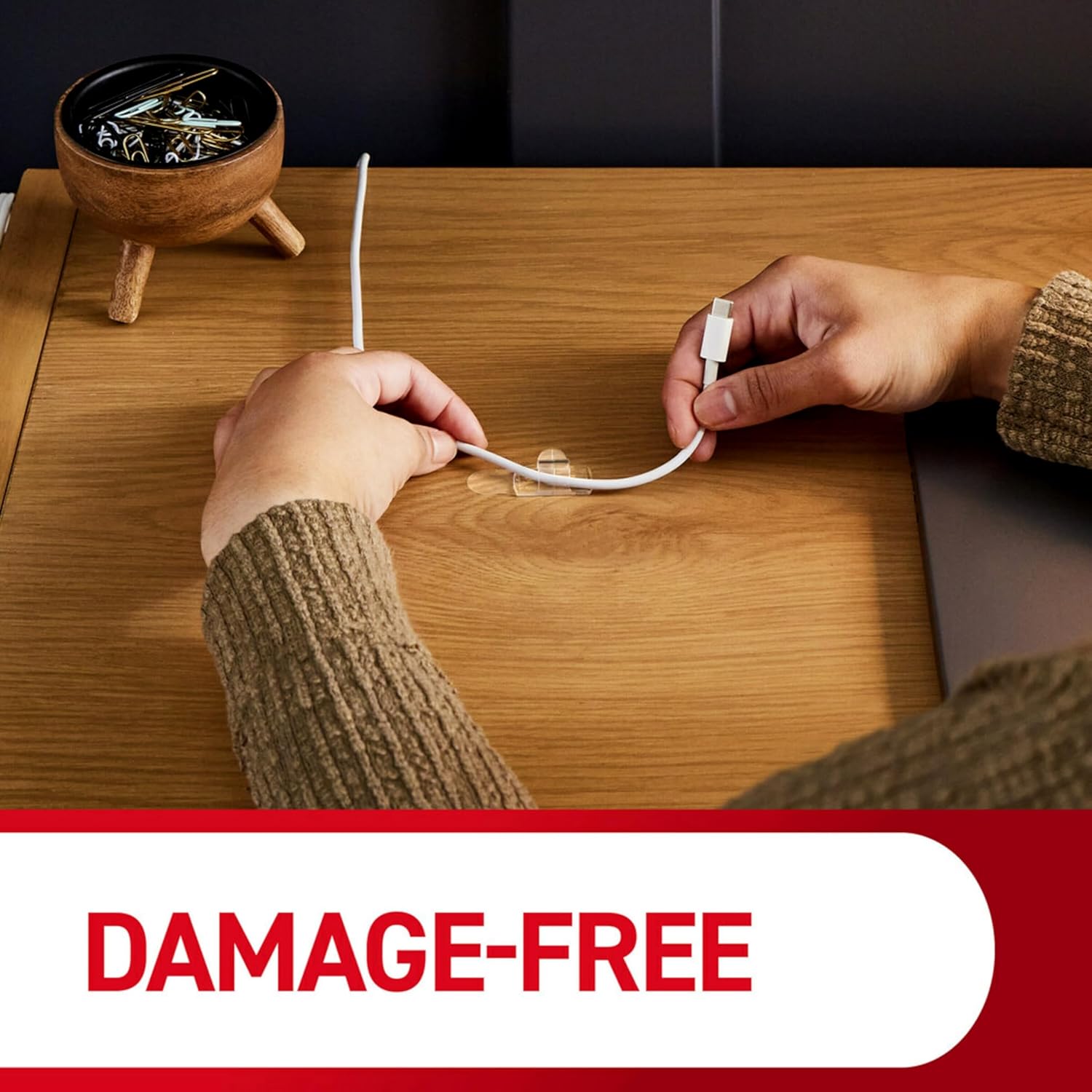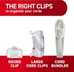DAMAGE FREE HANGING: Cord wall clips for hanging electrical cables and cords work without leaving holes, marks or sticky residue on a variety of surfaces and removes cleanly when you want to reorganize without tools