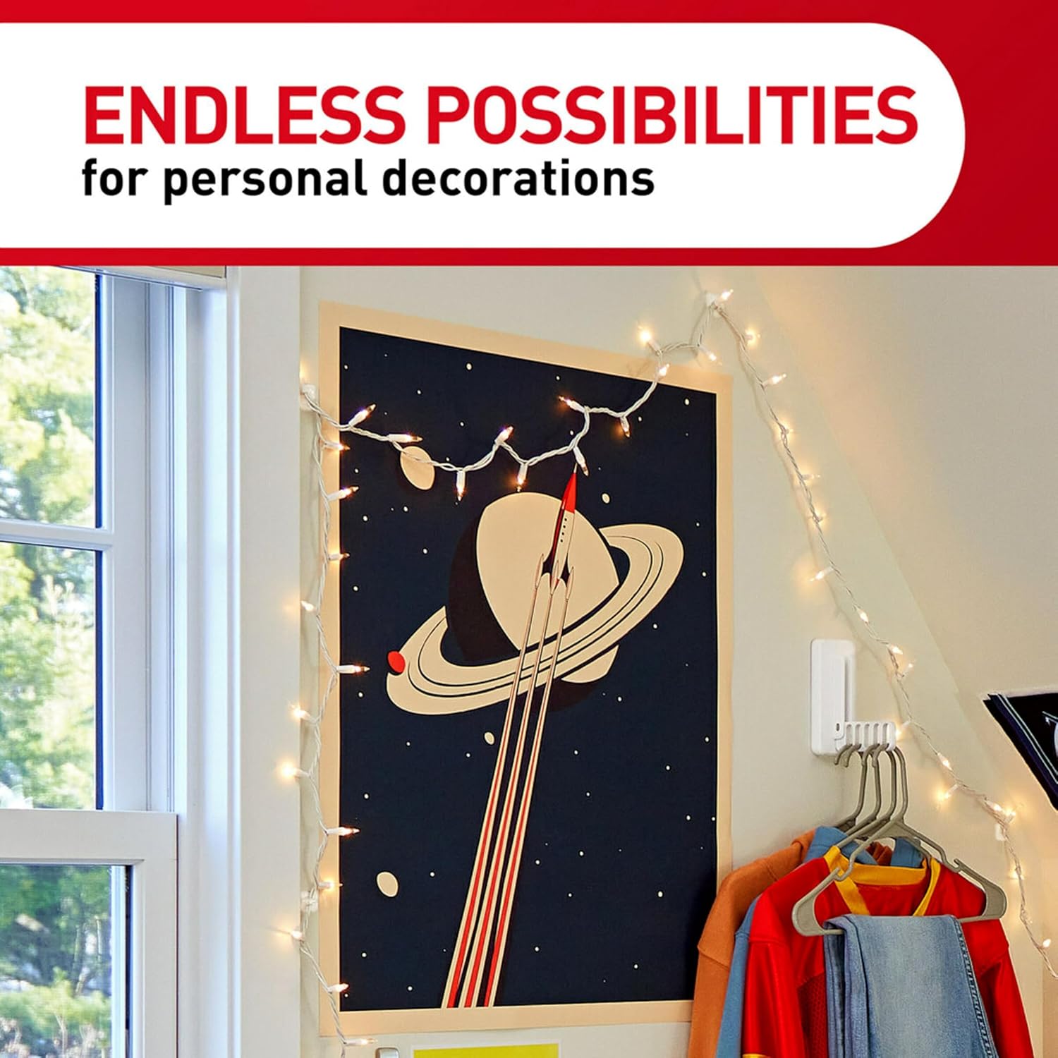 Command Clear Round Cord Clips eliminate dangerous, tangled cords behind your computers, appliances and entertainment centers without damaging your walls and surfaces. A great home improvement item, these damage free hanging wall cord clips stick on a variety of smooth surfaces without leaving holes, marks or sticky residue. Simply mount these cable cord clips on painted walls, finished wood, painted concrete cinder blocks, laminate, glass, metal and tiles to keep your electrical cable cords out of the way. Perfect for home renovators and college students, use these wall clips for hanging electrical cords in your work office, home office and entertainment areas to elevate the appearance of your living or working space without tools. Directions are included; follow the directions closely to use the cable clips as intended. Apply small Command Refill Strips to relocate the 3M Cord Clip you are using to a new area. A clever organizing solution that doesn’t damage surfaces, this adhesive cord clip pack will help you organize your space. One package contains 40 clear cord clips and 48 small Command Strips. Decorate, organize and celebrate damage free with Command.