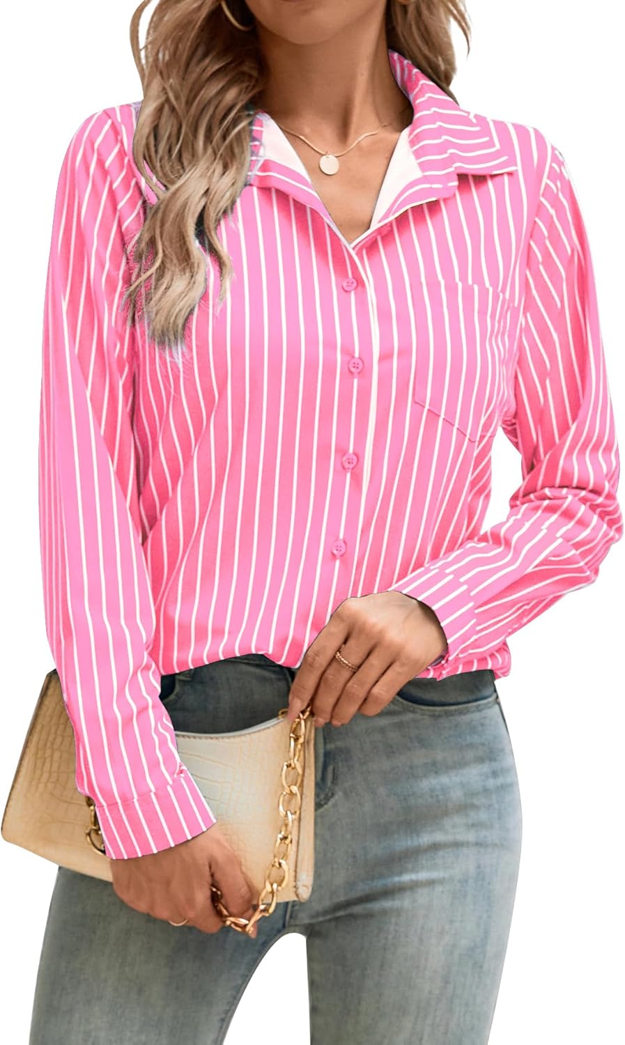 COUXILY Soft Wrinkle-Free Button Down Stretch Shirts for Women, Breathable Moisture-Wicking Casual Work Dress Tops