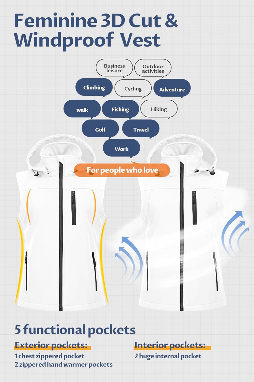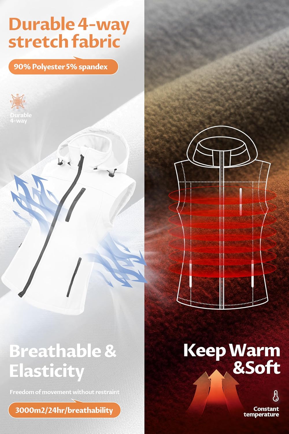 CREATMO US Women’s Lightweight Softshell Vest Outerwear Windbreaker Sleeveless Jacket With Removable Hood