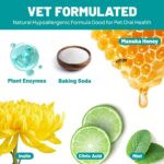 Safe and Natural Ingredients: Our unique formula includes EDI purified water, plant enzymes, baking soda, tea polyphenols, inulin, Manuka honey, and citric acid. This innovative blend is alcohol-free, devoid of parabens and fragrances, making it safe even if licked or ingested. Perfect for pets with sensitive teeth, gums, and enamel.