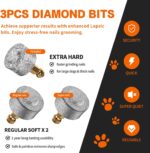 【Enhanced Professional Dog Nail Clippers Kit】Elevate pet nail care with our high-quality LOPSIC dog nail grinder kit.This UPGRADED kit includes essential accessories designed to provide optimal nail care. Includes 2 regular replacement diamond bits, 1 extra hard diamond bit for tackling tougher nails, 1 removable dust cap, and 1 velvet storage bag. Effortlessly maintain your pet’s nails with our reliable and user-friendly grinder. Enjoy stress-free nails grooming for you and your furry friend.