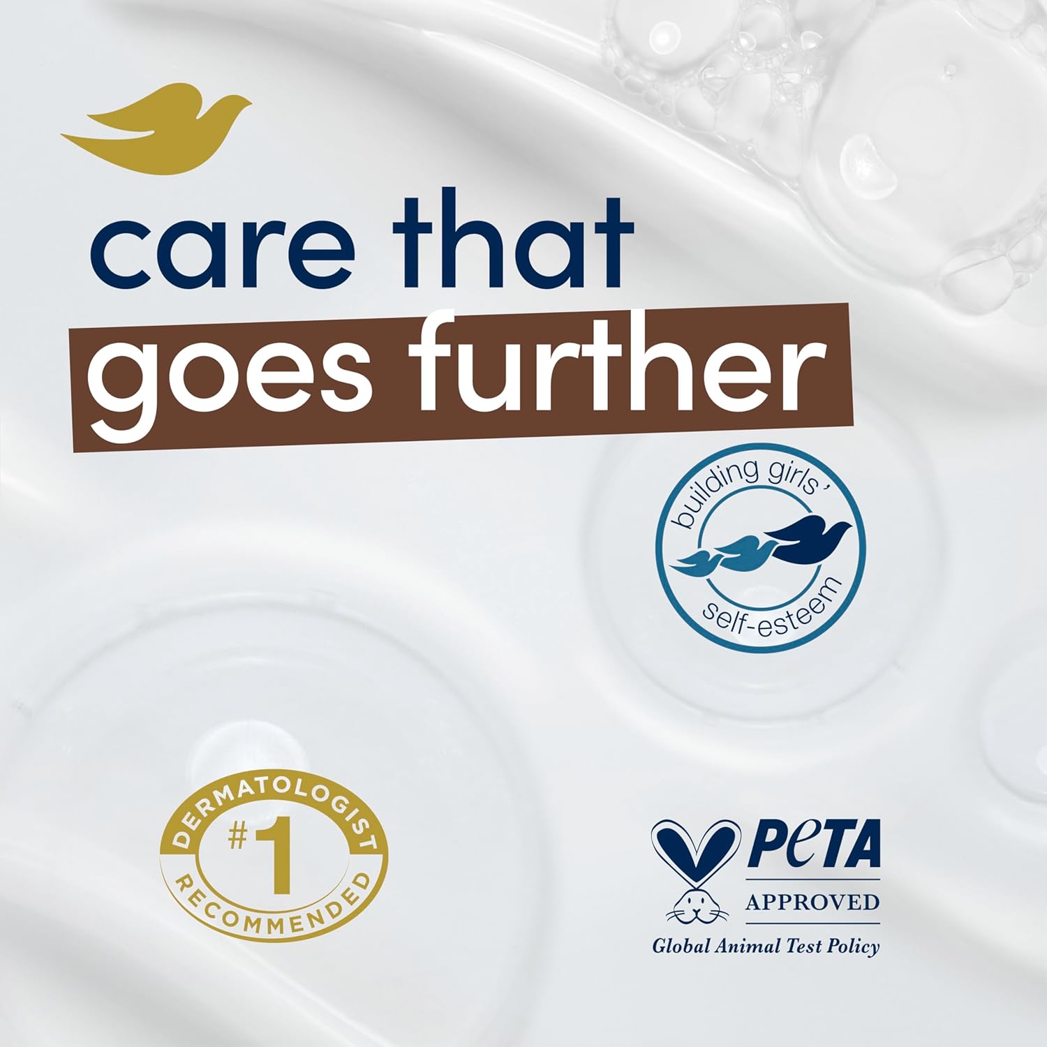 CARE WITH YOUR CLEANSER: Globally, Dove does not test on animals and is PETA Approved. Our mission is to help the next generation of women develop a positive relationship with the way they look, helping them raise their self-esteem.