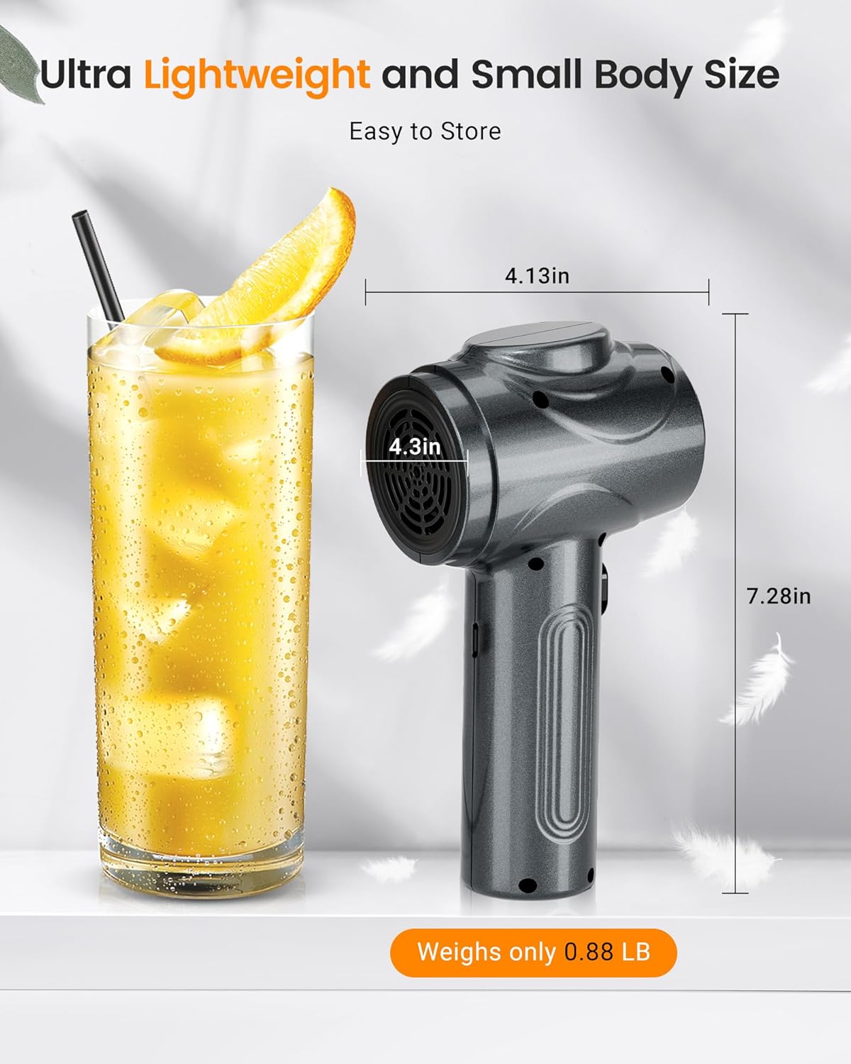 【Compact And Cordless Air Duster】Computer air duster weighs only 1.0 LB, and comfortable to grip, small body size allows for easy storage in drawers, cabinets, or car. As an alternative to compressed air, this reduces the need for frequent canned air replacements and environmentally than constantly buying canned air.