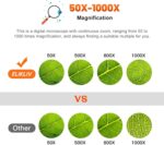 Powerful 1000x Magnification: This microscope for adults allows you to zoom in and see the incredible details at a magnification range from 50x to 1000x; The actual magnification differs due to the screen size, the distance between the camera and object