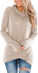 Fallorchid Womens Cowl Neck Tunic Tops Long Sleeve Pullovers Casual Drawstring Sweatshirts
