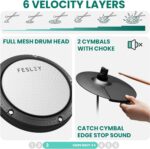 FULL MESH HEADS: The drum heads use full-mesh technology, and the unique drum skin is denser and more durable. Using premium silicone cymbals to provide stable and evenly distributed tone responses.