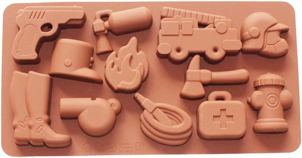Fire Fighting Equipment Shape Silicone Chocolate Candy Jello Soap Crayon Mold