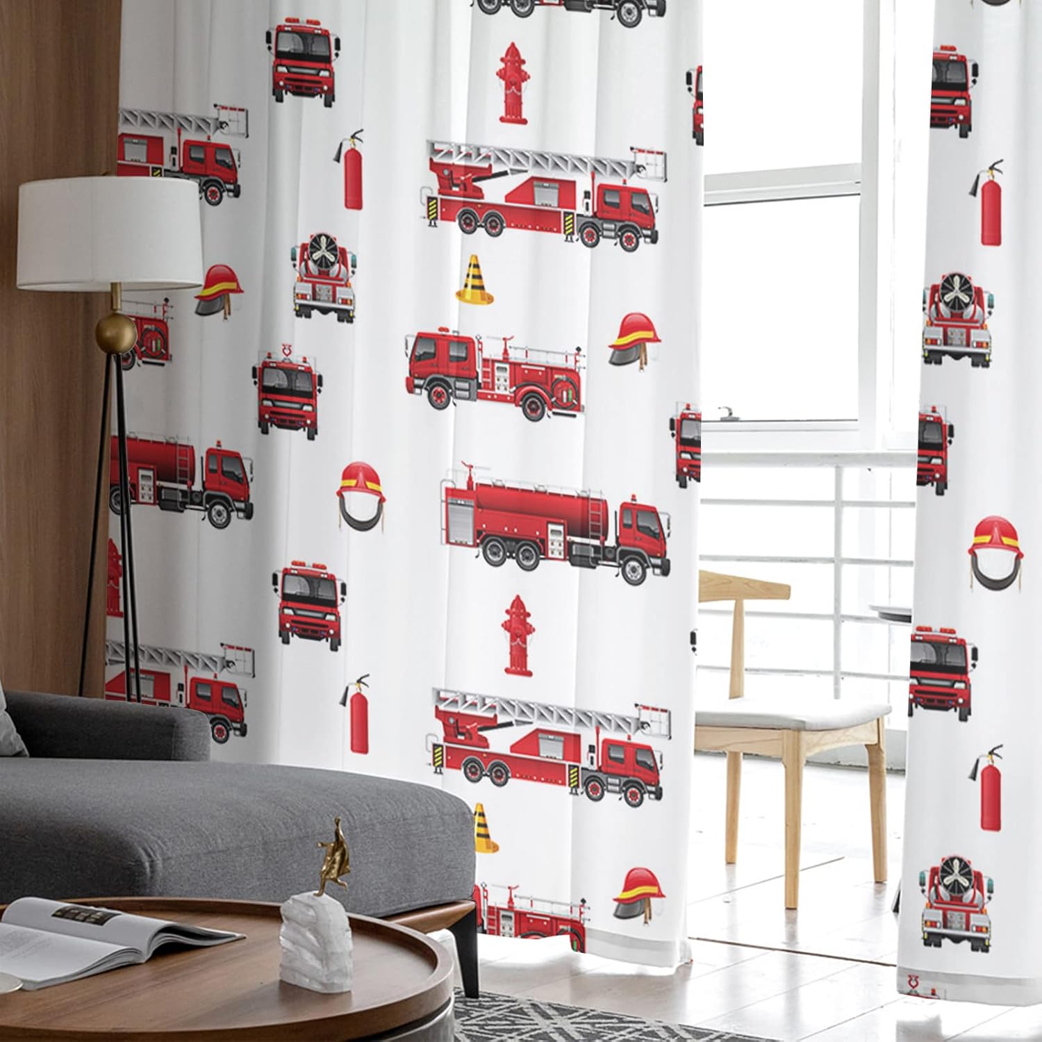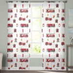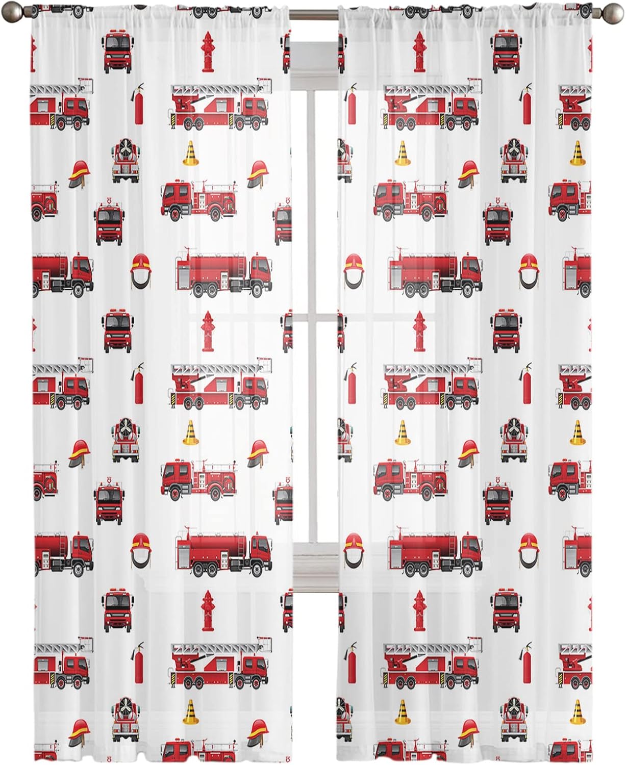 Fire Truck Sheer Curtains 96 Inches Length 2 Panels Set Chiffon Curtain Sheers for Living Room, Fire Fighting Equipment Tiled Texture Rod Pocket Window Drapes Sheer Privacy Curtains Panels